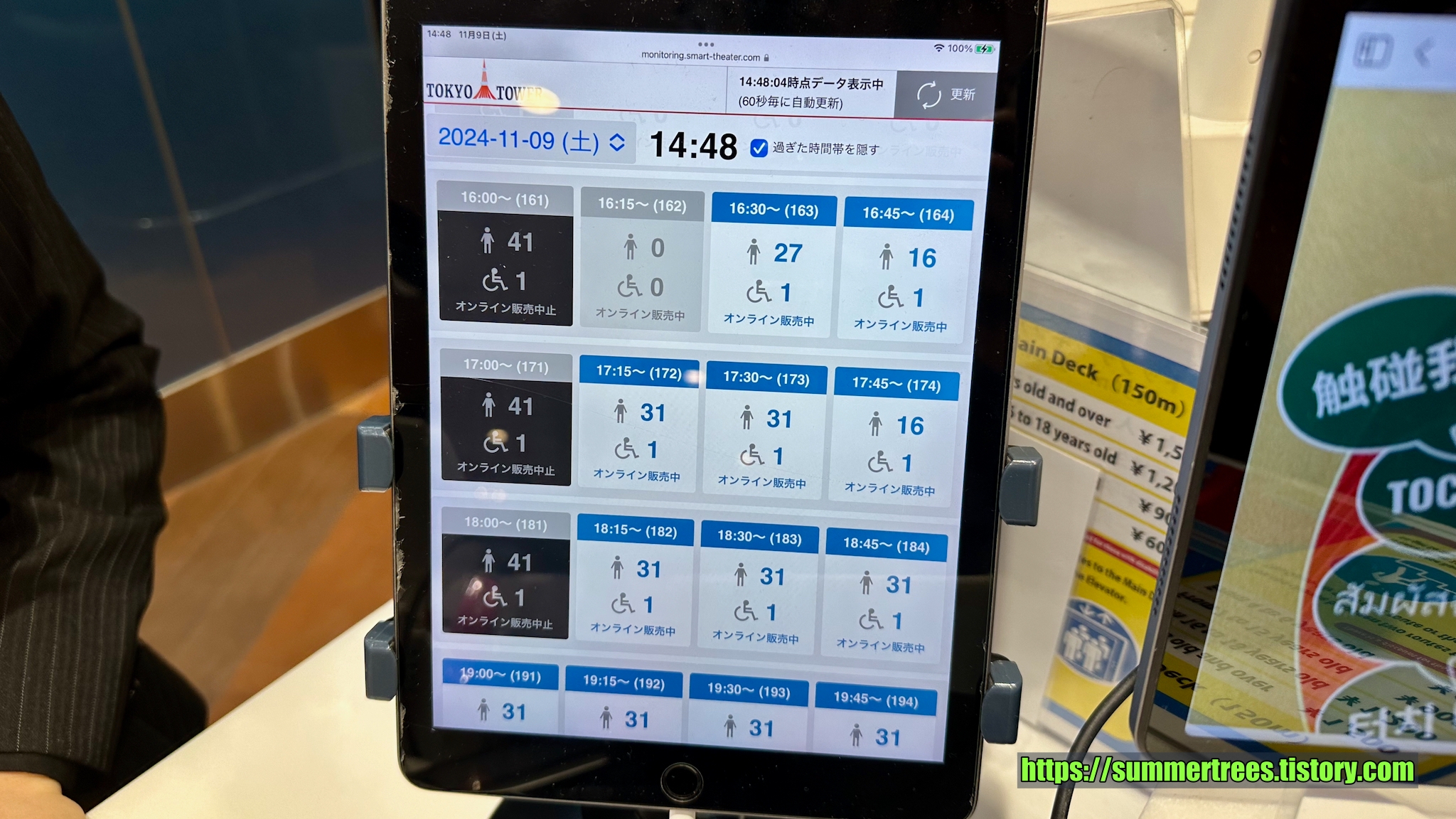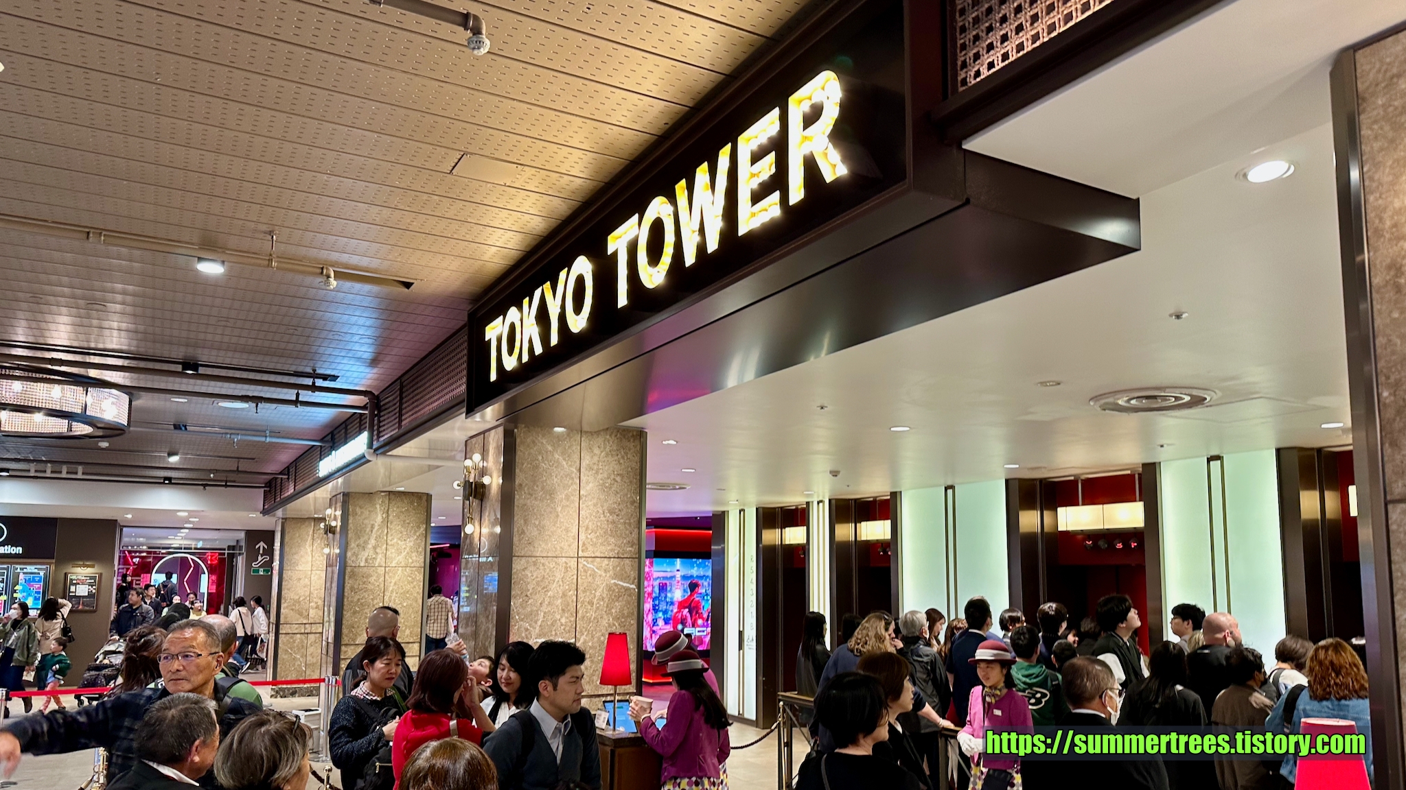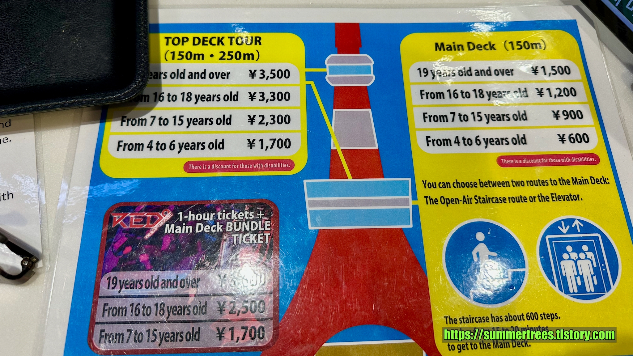 중간데크와 맨꼭대기데크 두 가지 옵션이 있는데 꼭대기는 두 시간 이상 기다려야 한다고 해서 중간까지만 가기로 했다. 그래도 비쌌다. 1500 엔, 꼭대기는 3500 엔.