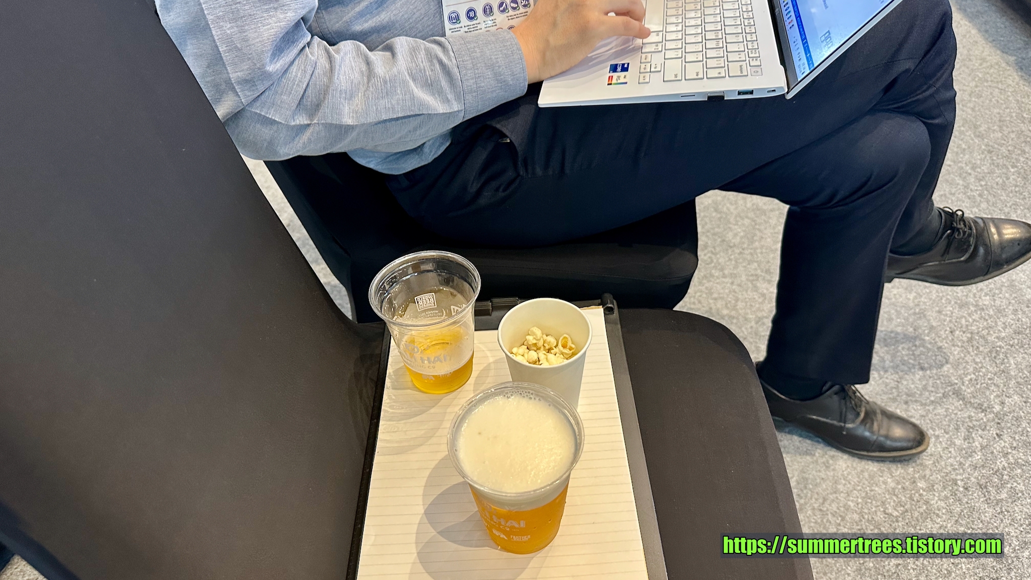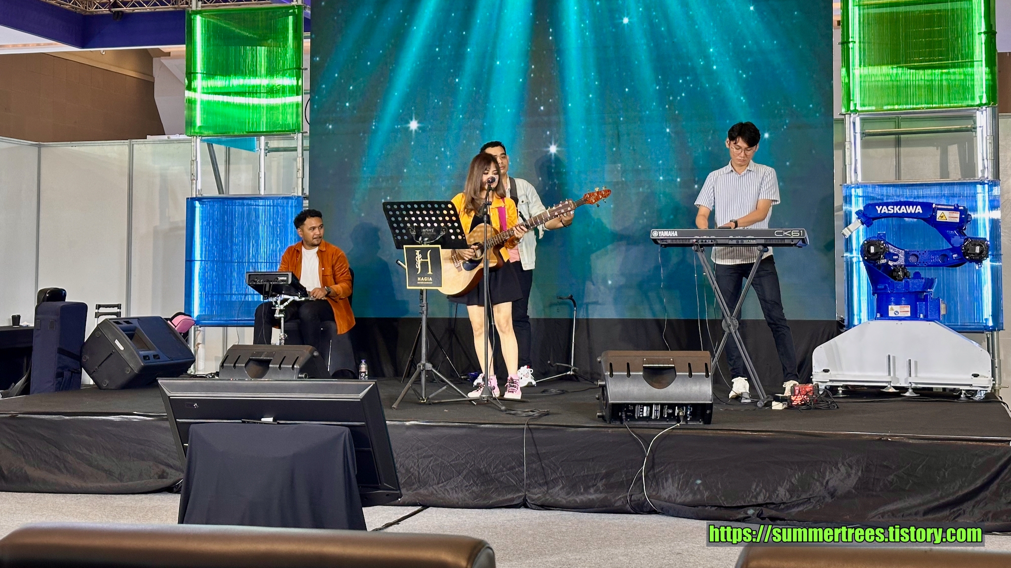전시회 한 켠에는 극장식으로 무대를 설치하고 마칠 무렵마다 밴드의 연주와 함께 무료맥주를 제공해줬다. 여기를 알고부터는 마칠 시간에는 이곳에 앉아 맥주를 마시며 업무정리를 했다.