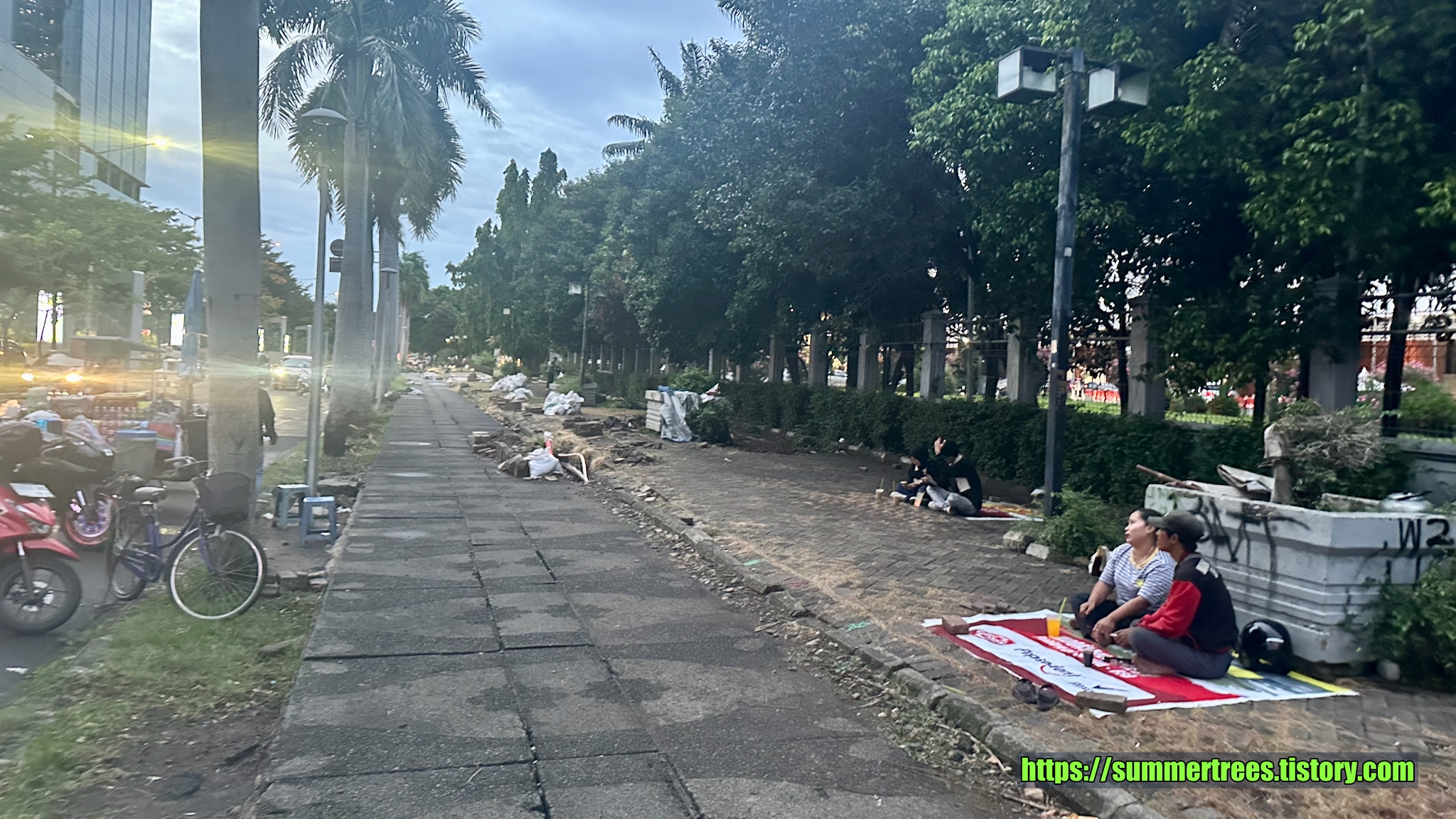 전시회 준비가 오후 늦게 된다고 해서 오전에는 나들이를 하기로 했다. 호텔에서 Ancol beach까지 걷기로 했다.호텔을 나서니 오토바이가 무척 많았고 현지인들의 식당에서 맛있는 숯불구이 냄새