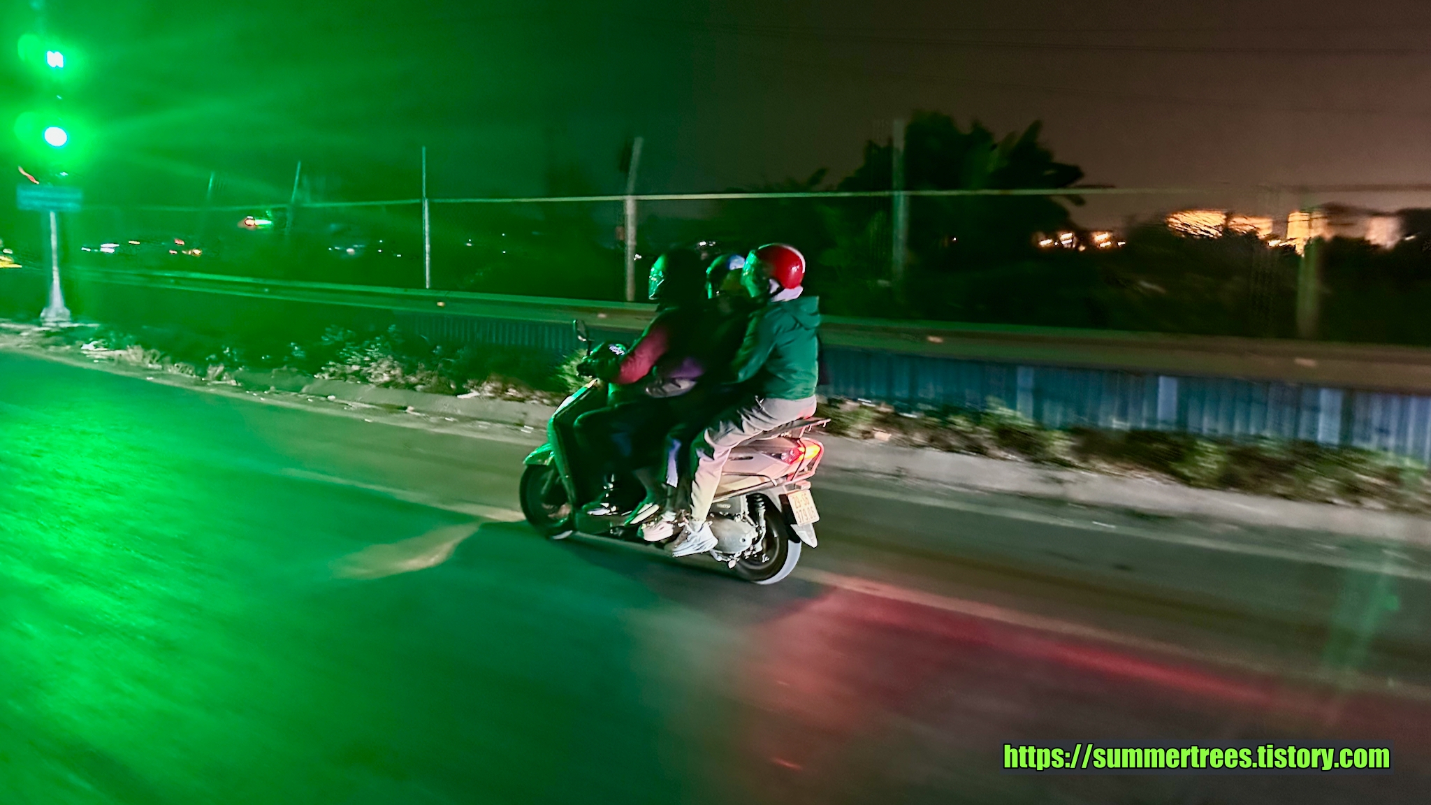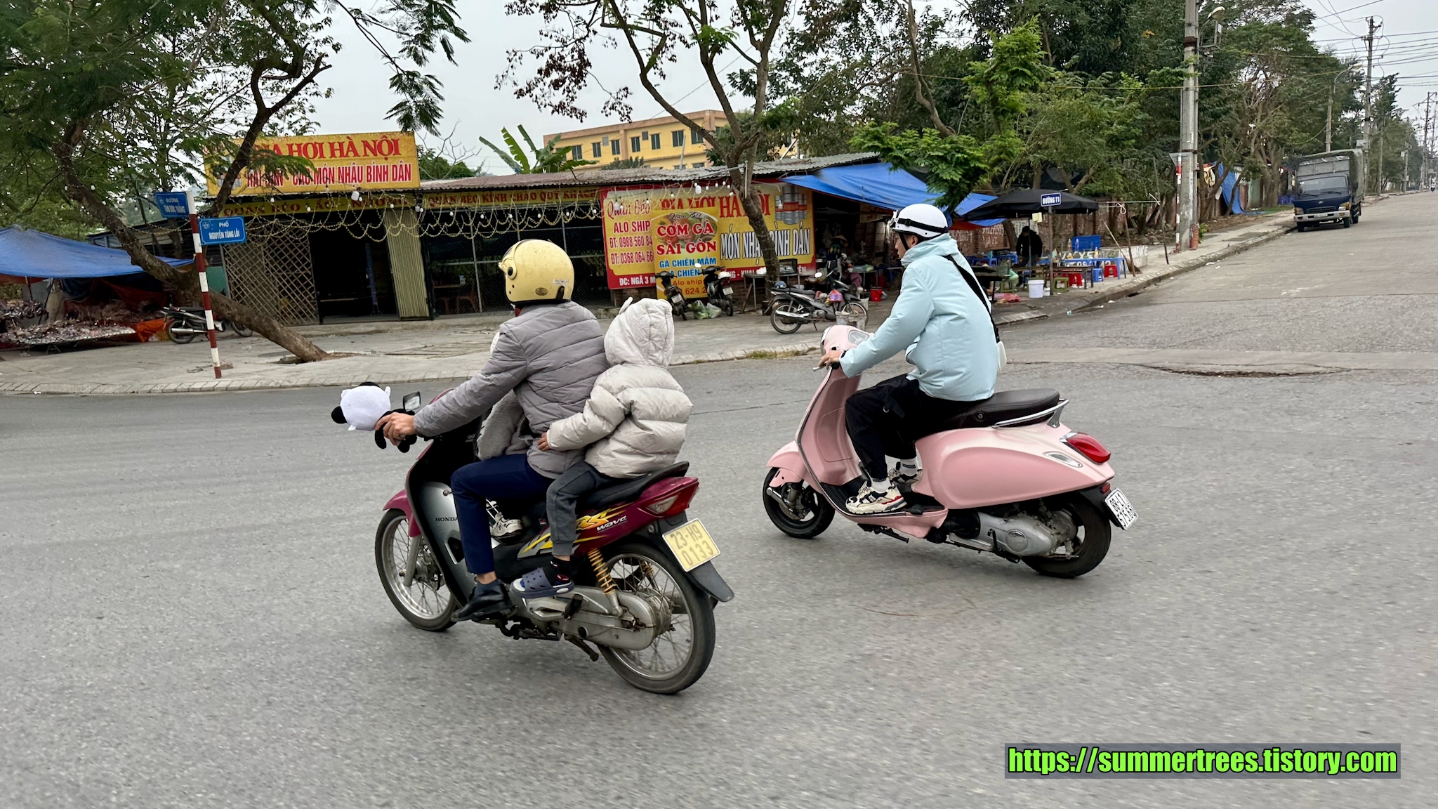 오토바이 앞뒤에 앉은 꼬마들이 너무 귀여웠다. 어떤 사람은 꼬마를 위한 인형을 들고 있었다.