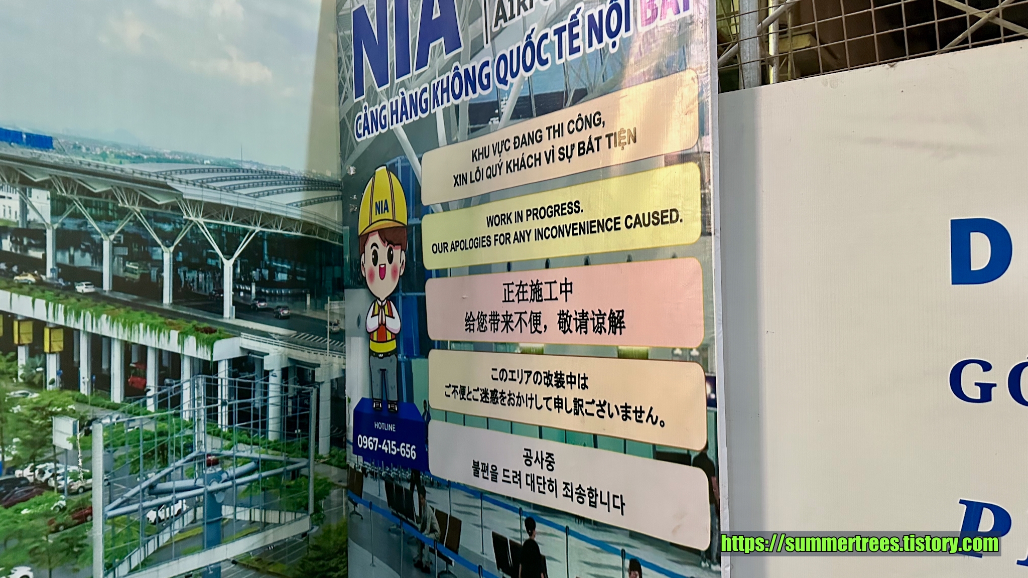 공항의 공사표지판. 한글이 있어서 신기했다.