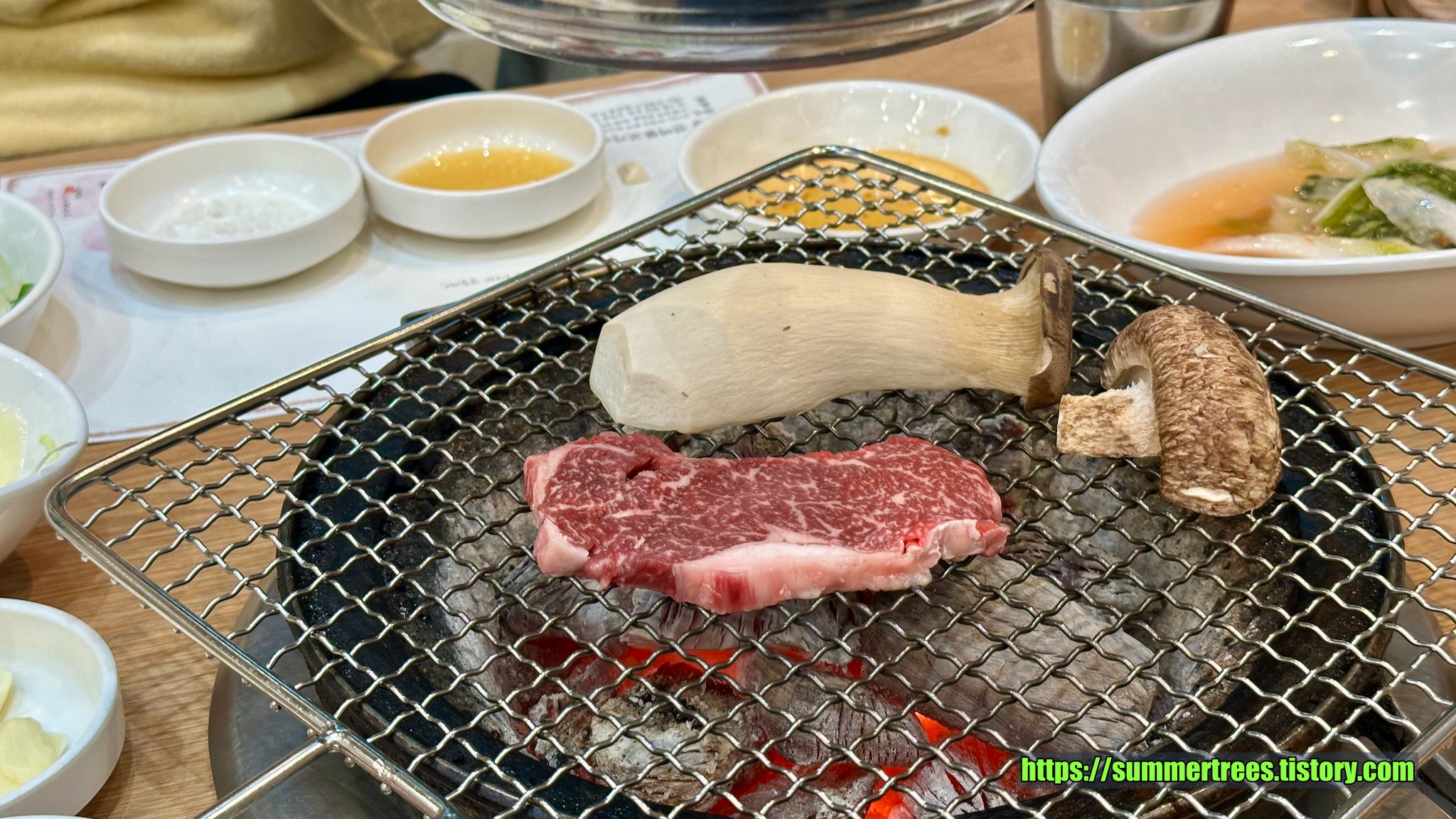 꽃등심과 살치살을 주문했는데 살치살보다는 꽃등심이 좋았다. 굽는게 잘못됐는지 살치살이 더 질겼다.