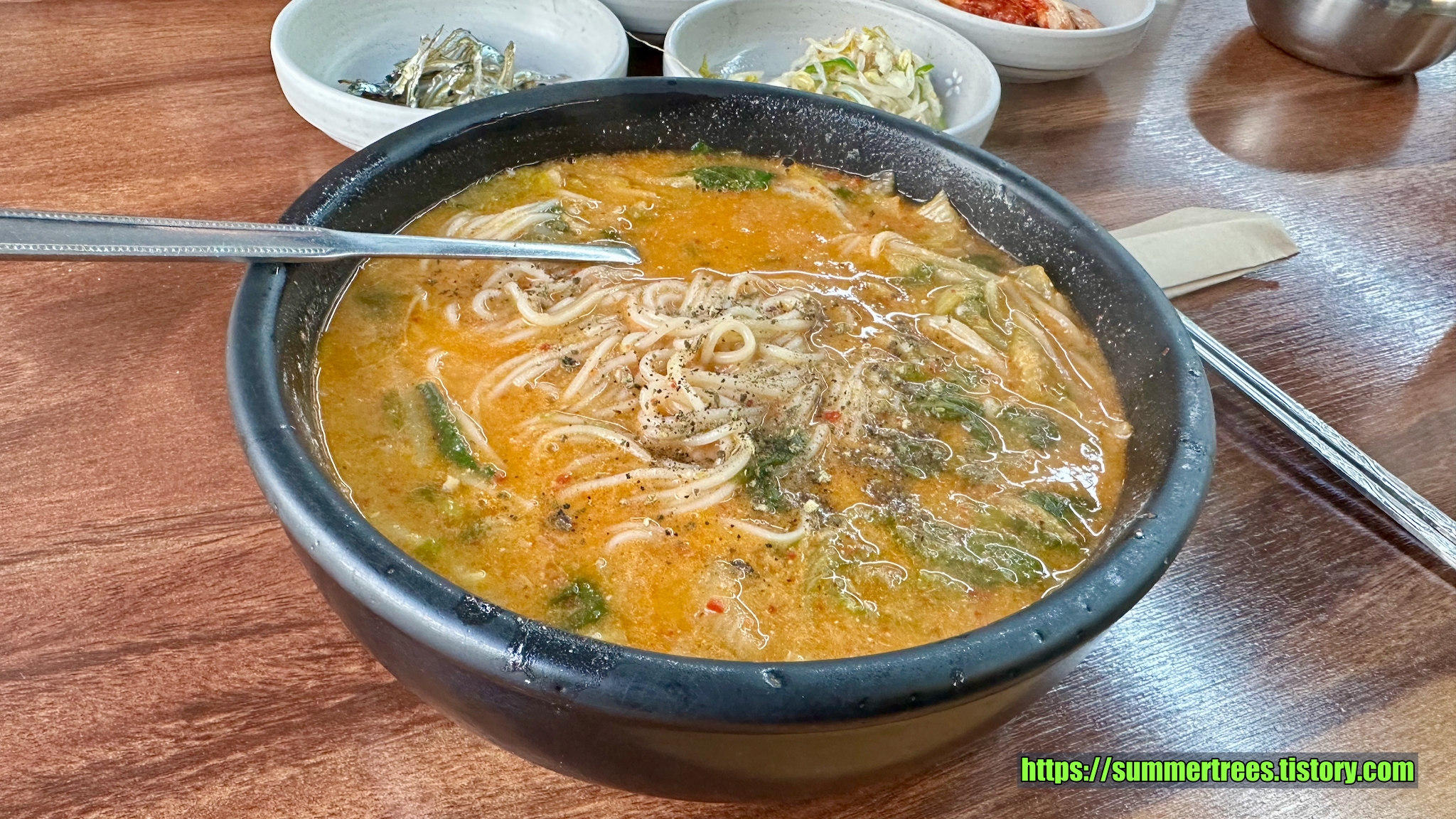 어탕국수엔 산초가 꼭 필요한데 테이블에 미리 준비되어 있지 않아 달라고 해야 한다. 산초가루도 향이 모자라서 많이 넣어야 된다.