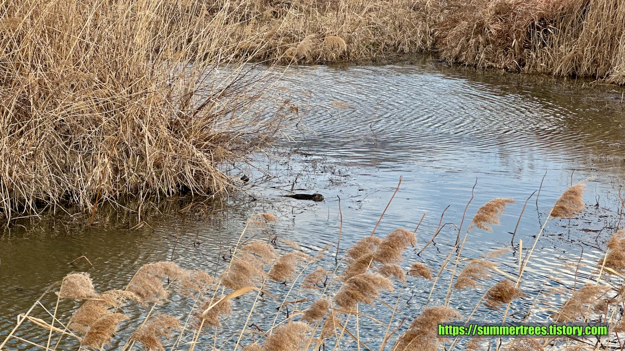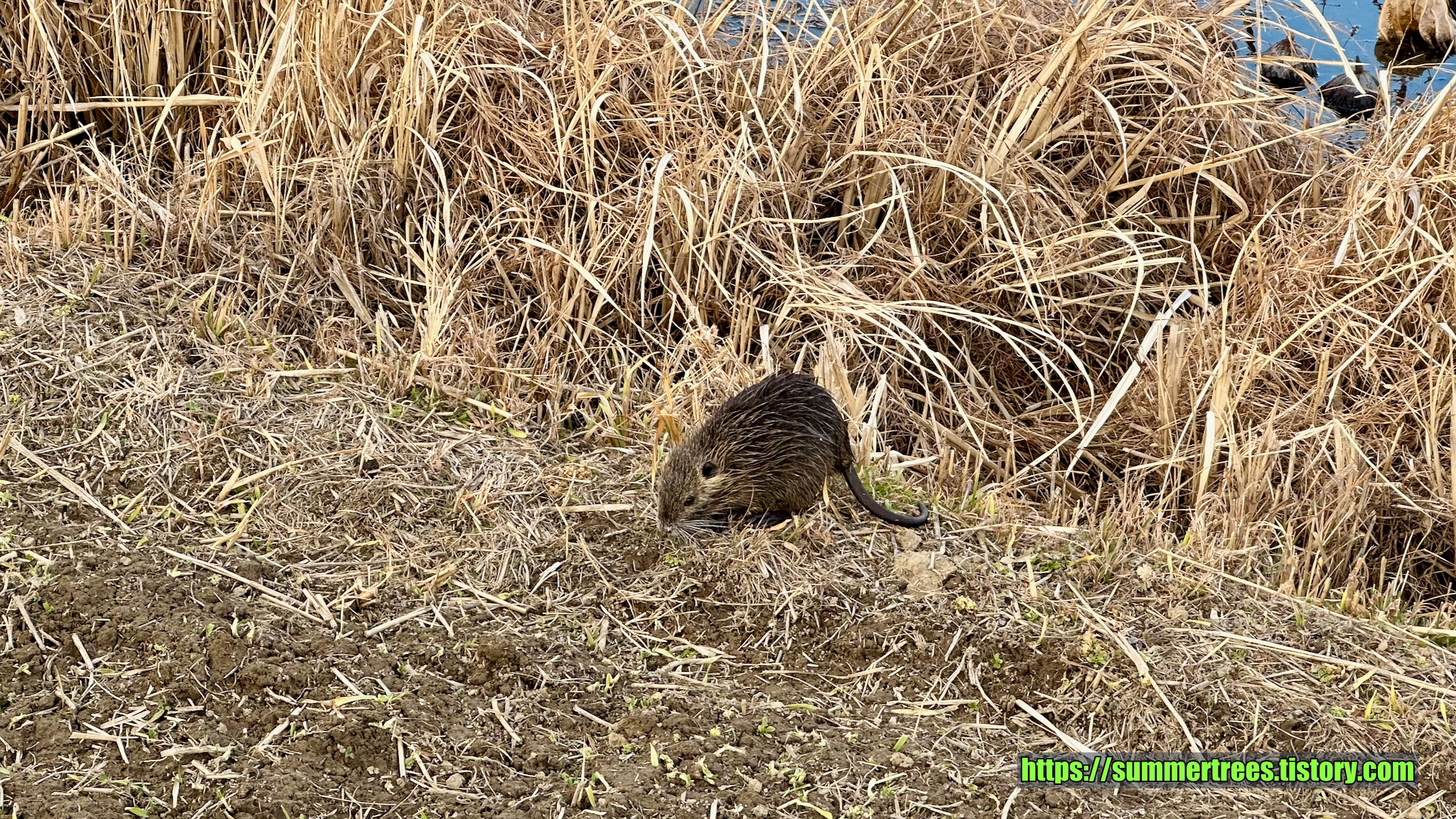 움직이는 동물을 보고 수달일까 싶어 자세히 봤는데 뉴트리아였다. 세 마리나 봤다. 자세히 보니 쥐처럼 생겼다. 귀여웠다.