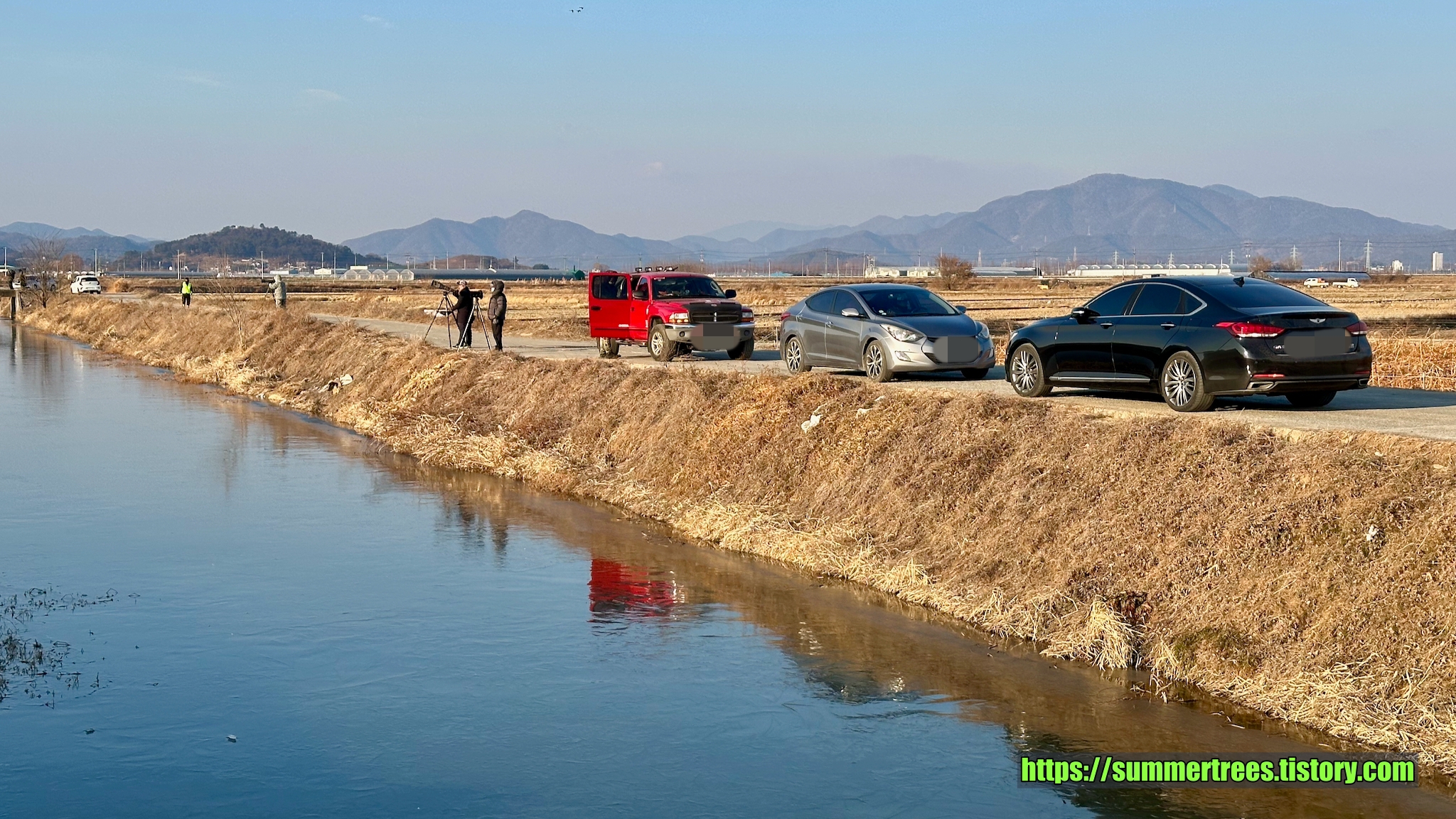 주남저수지 부근을 드라이브했는데 철새사진을 찍으려는 대포카메라들이 많았다.