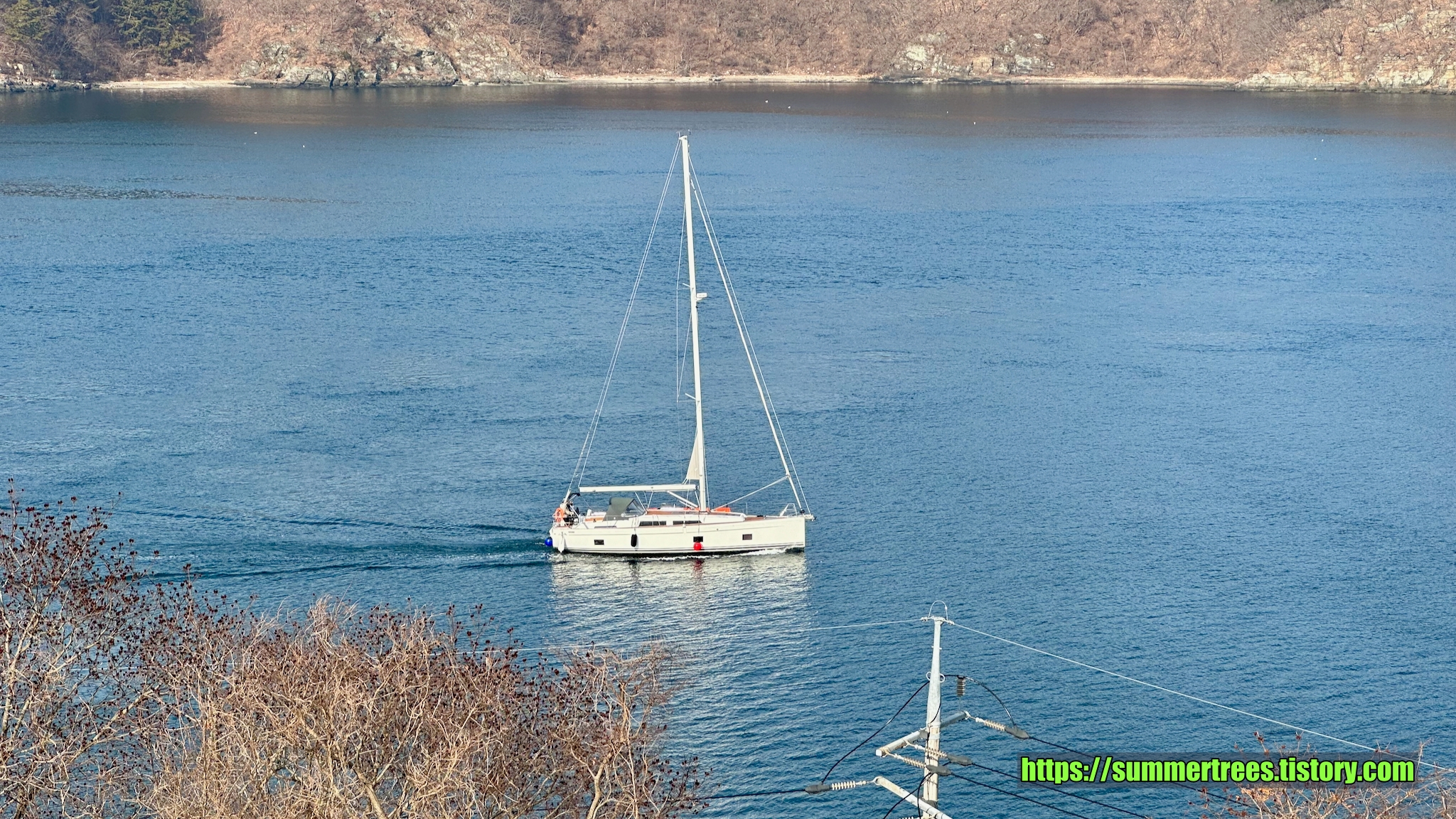 유튜브에서 봤던 요트가 지나가는데 꽤 빨랐다.