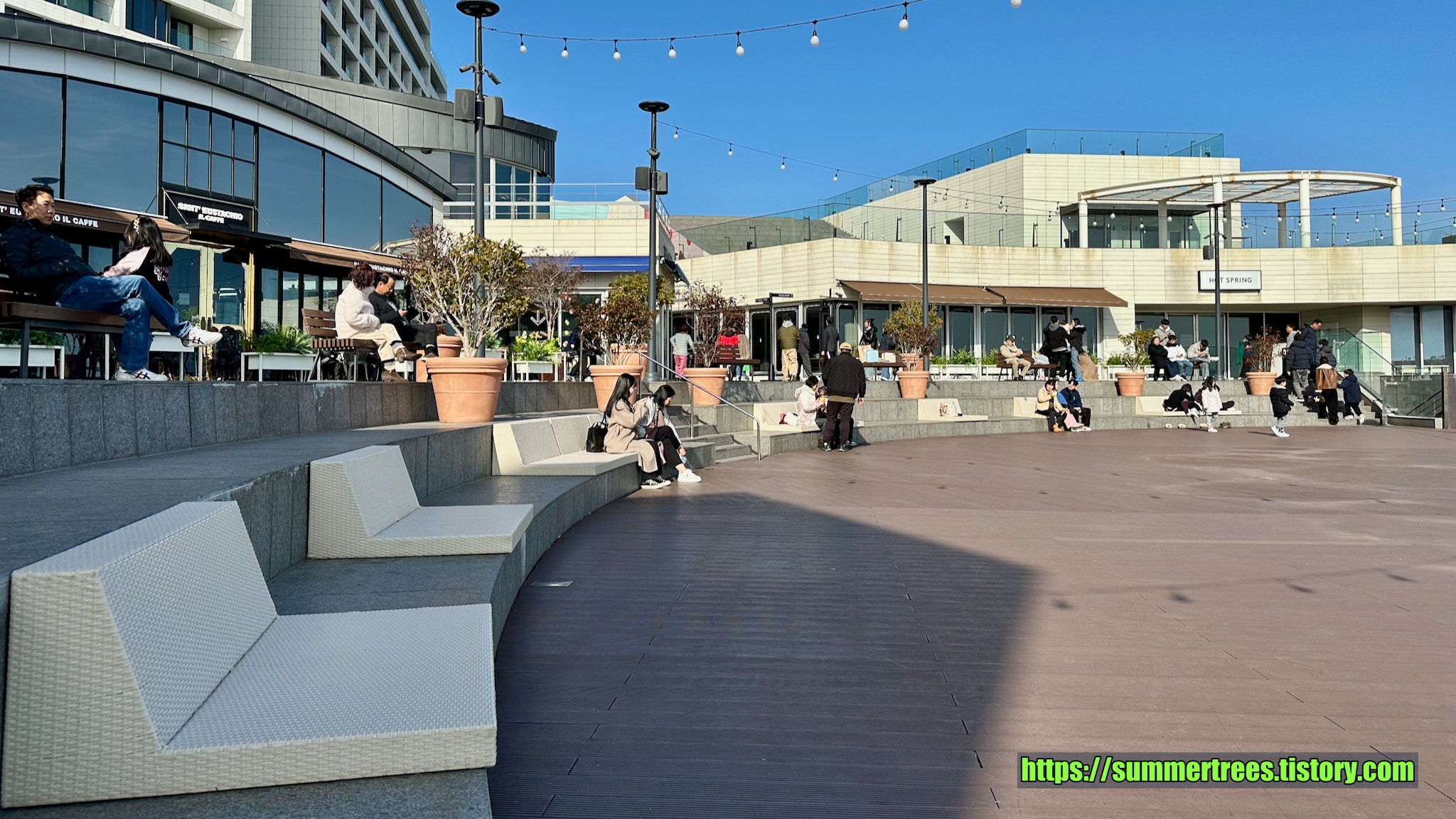 아난티타운에는 바다를 볼 수 있는 넓은 데크마당이 있다.