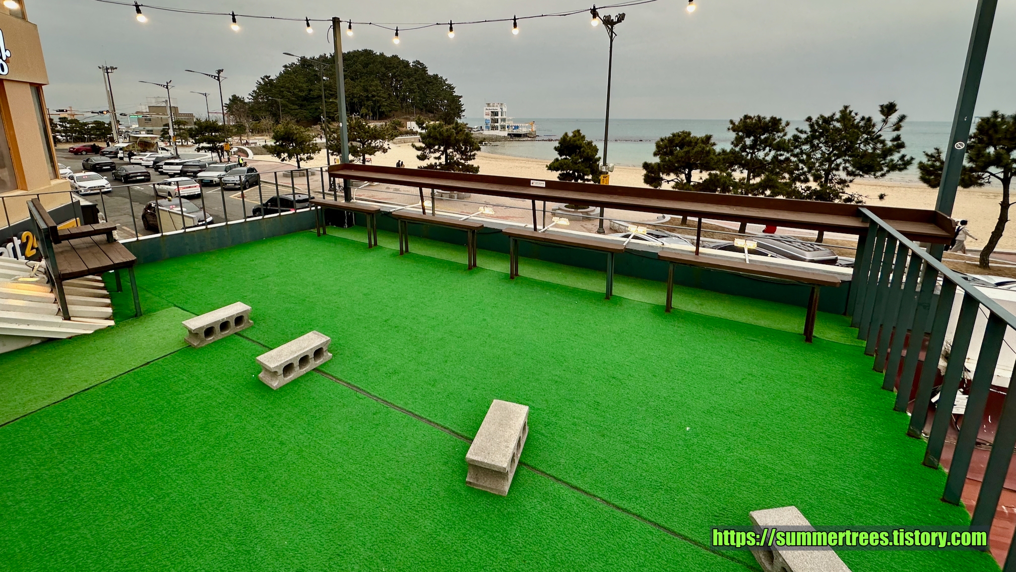 루프탑에서 송정해수욕장을 구경하며 먹으면 운치가 있다.