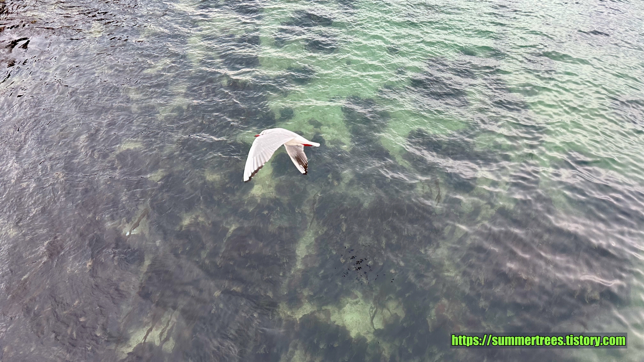 바다 속 미역을 찍으려 했는데 지나던 갈매기가 찍혔다.