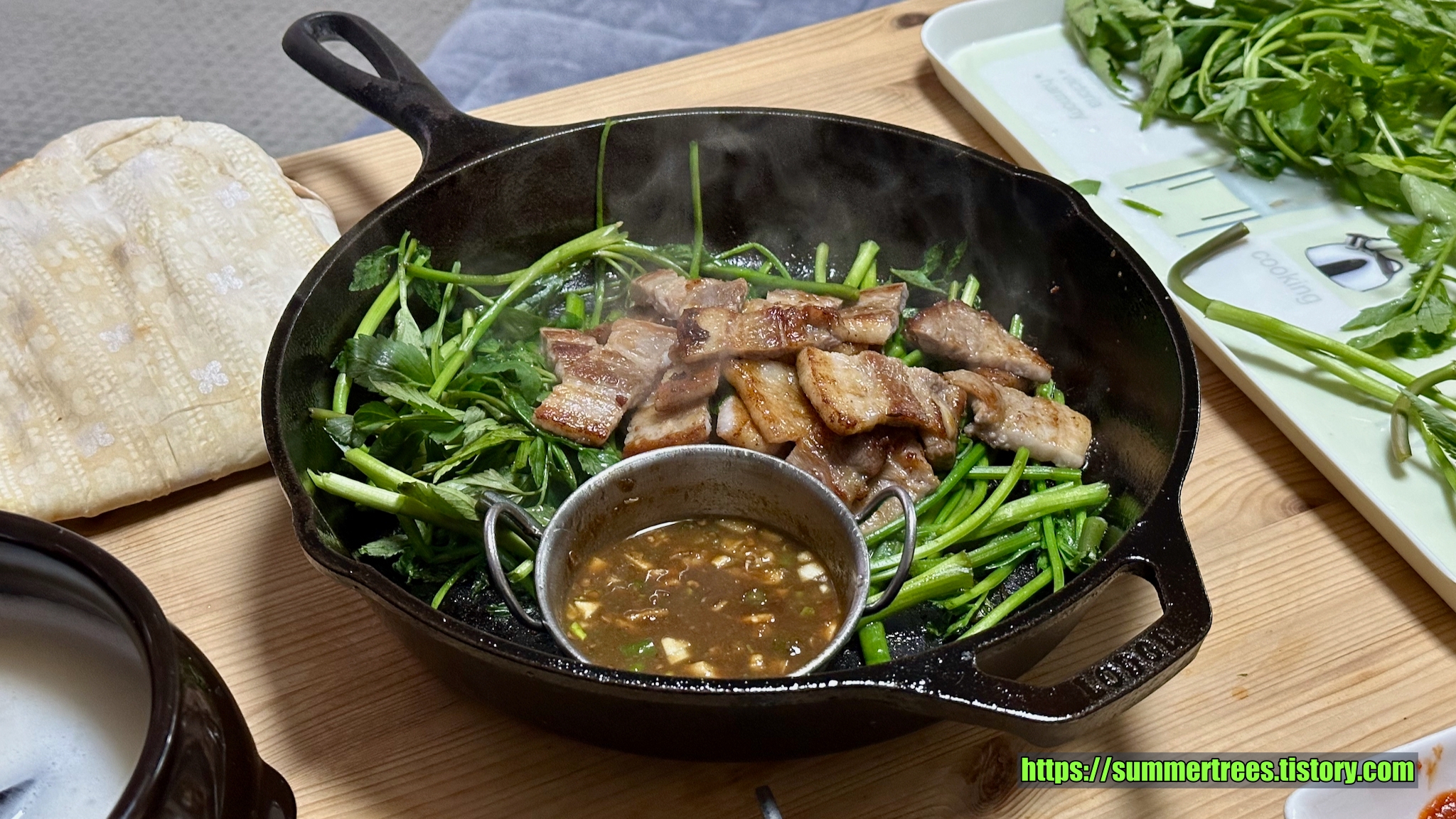 미나리와 함께 집에서 삼겹살구이.