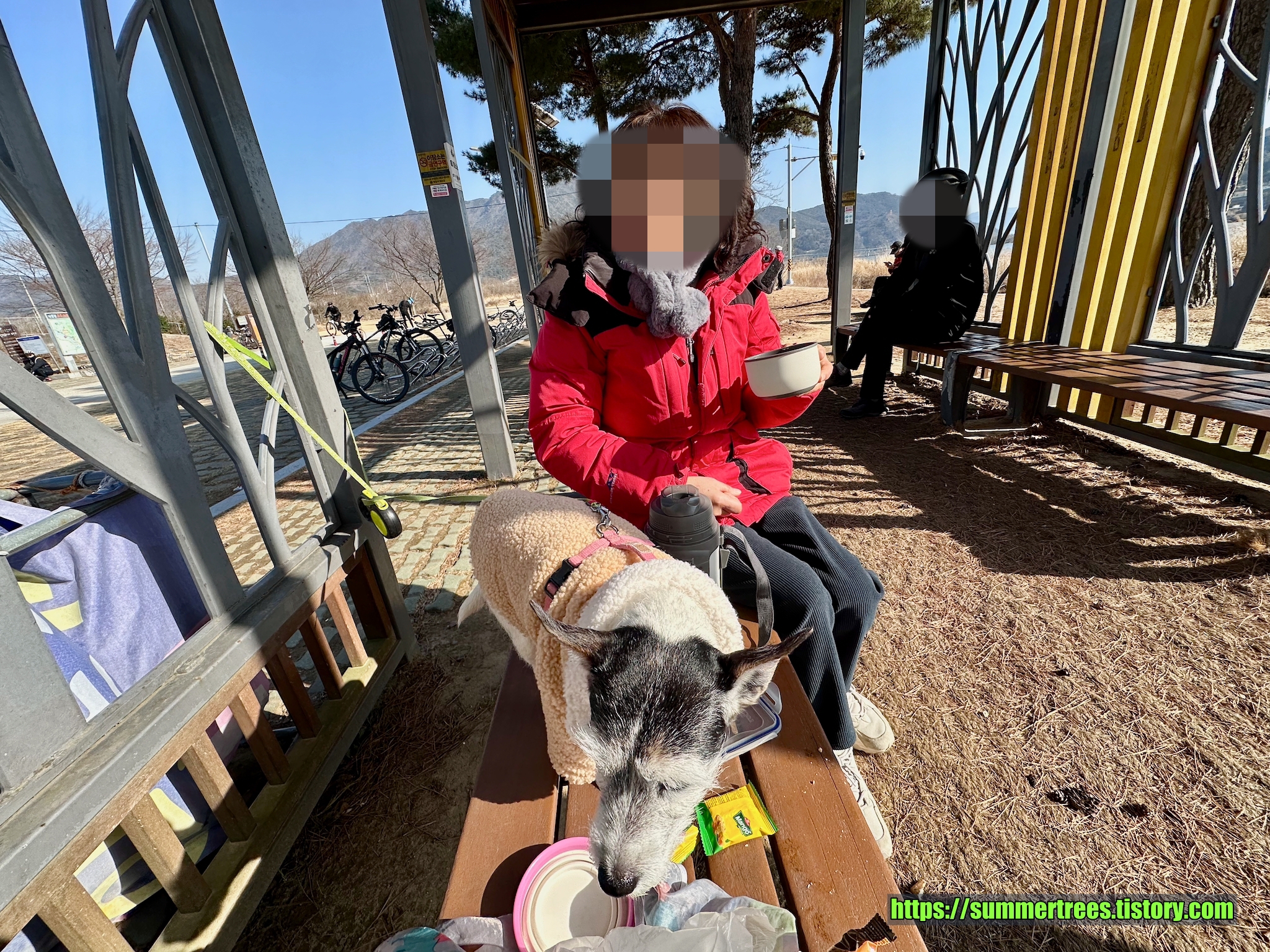 미리 만들어온 간식과 커피를 서룡공원에서 먹었다. 봄날처럼 따듯해서 좋았다.