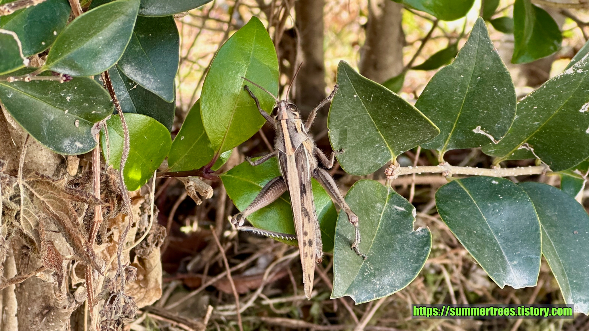 황산공원에서 본 메뚜기. 아직 나올 때가 아닌데 미리 나와서 어쩌나 싶었다. 이 날은 따듯했지만 다음 날부터 추워져 걱정이 된다.