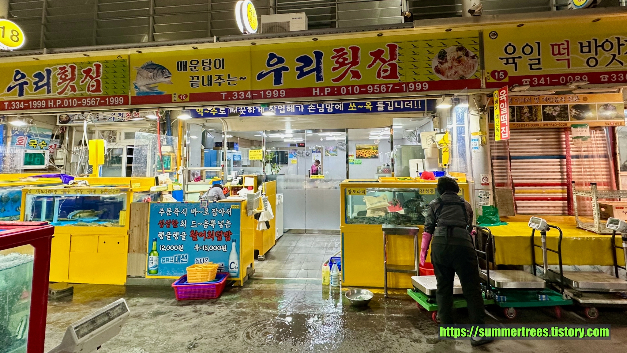 시장횟집이라 그런지 저녁 9시가 마감시간인데 우리가 늦게 간지라 쫓기듯 먹어야 했다. 거의 9시 맞춰서 나왔다.