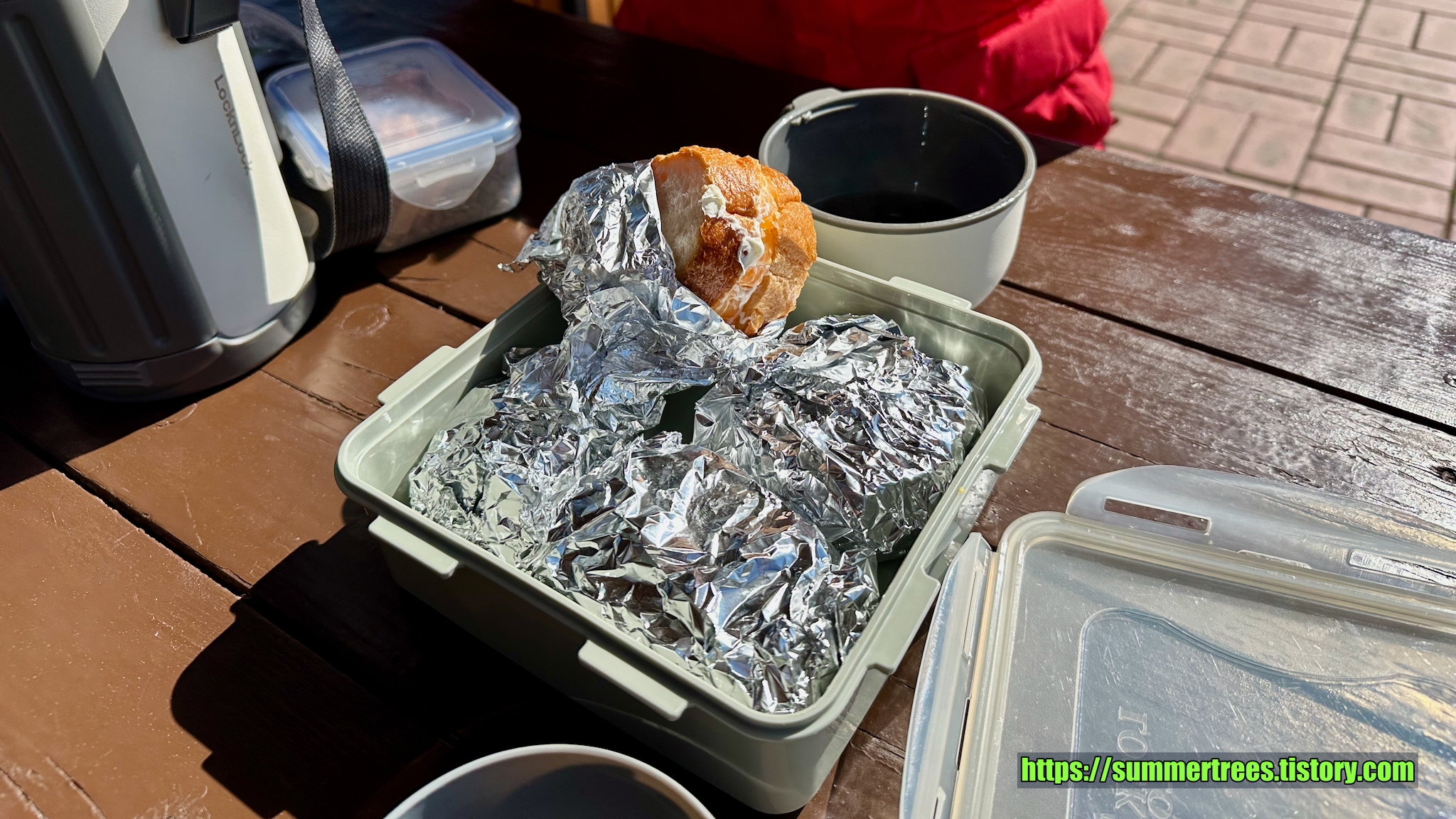 집에서 만든 카이막 샌드위치와 커피. 꿀과 한라봉귤을 같이 넣어 맛있었다.