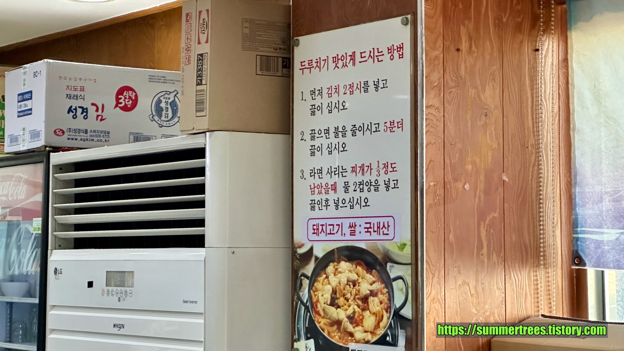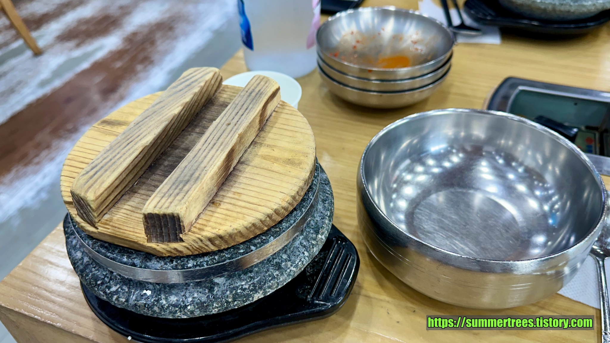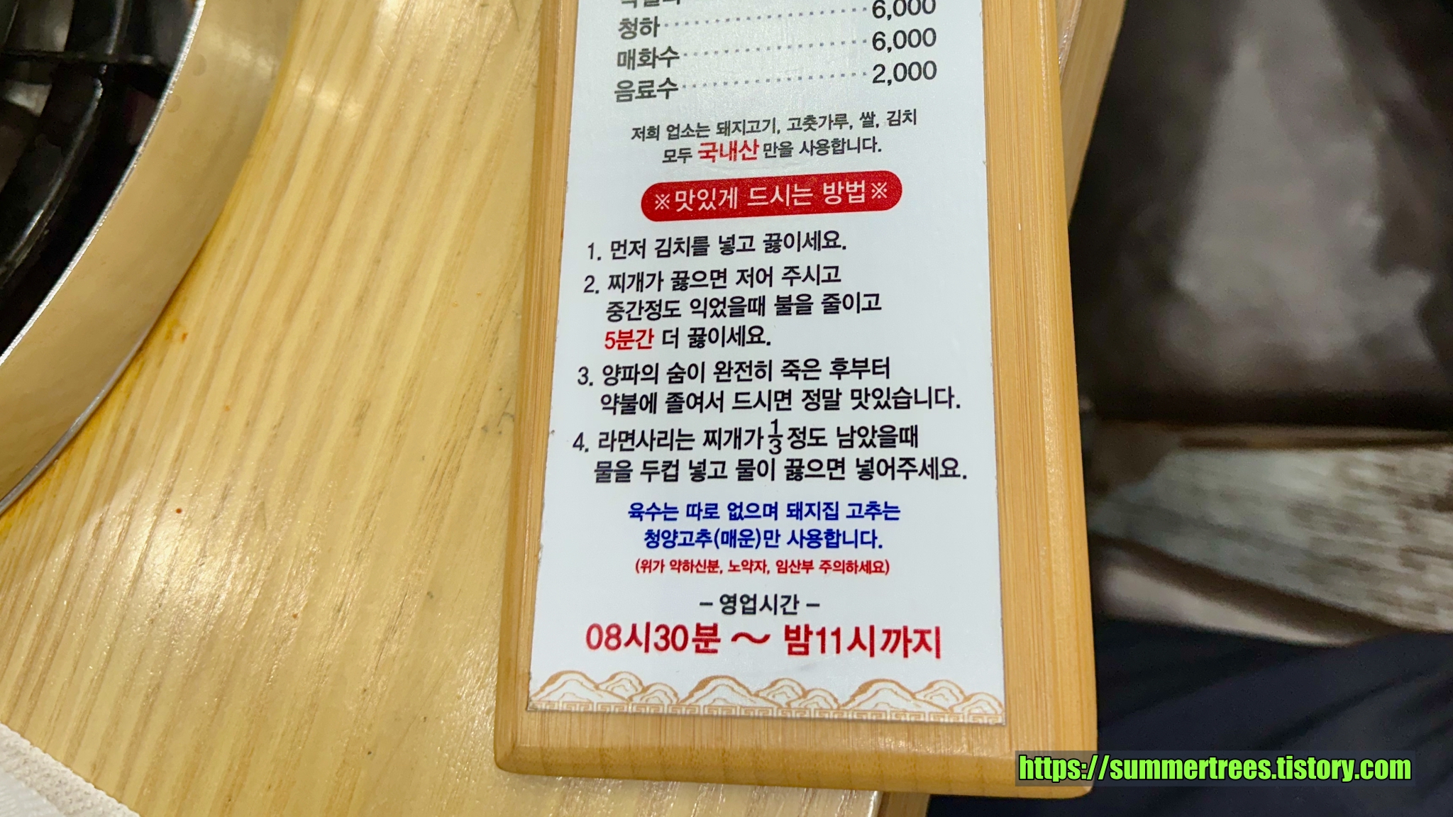 특이하게 사람 수에 맞게 종지에 담긴 김치를 주고, 그걸 찌개에 부어 끓여먹는 시스템이다.