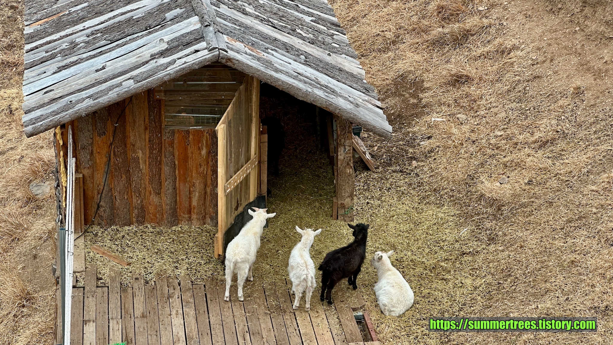 별실 밖 데크를 나가 아래를 보니 새끼양들이 지들끼리 다투는데 아주 귀여웠다.