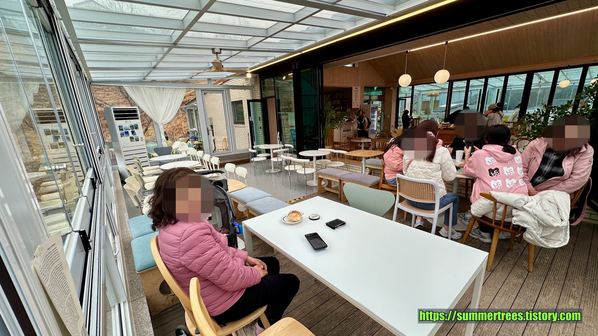 바깥에도 데크에 테이블들이 있어서 따듯한 날에는 이용하기 좋았다.