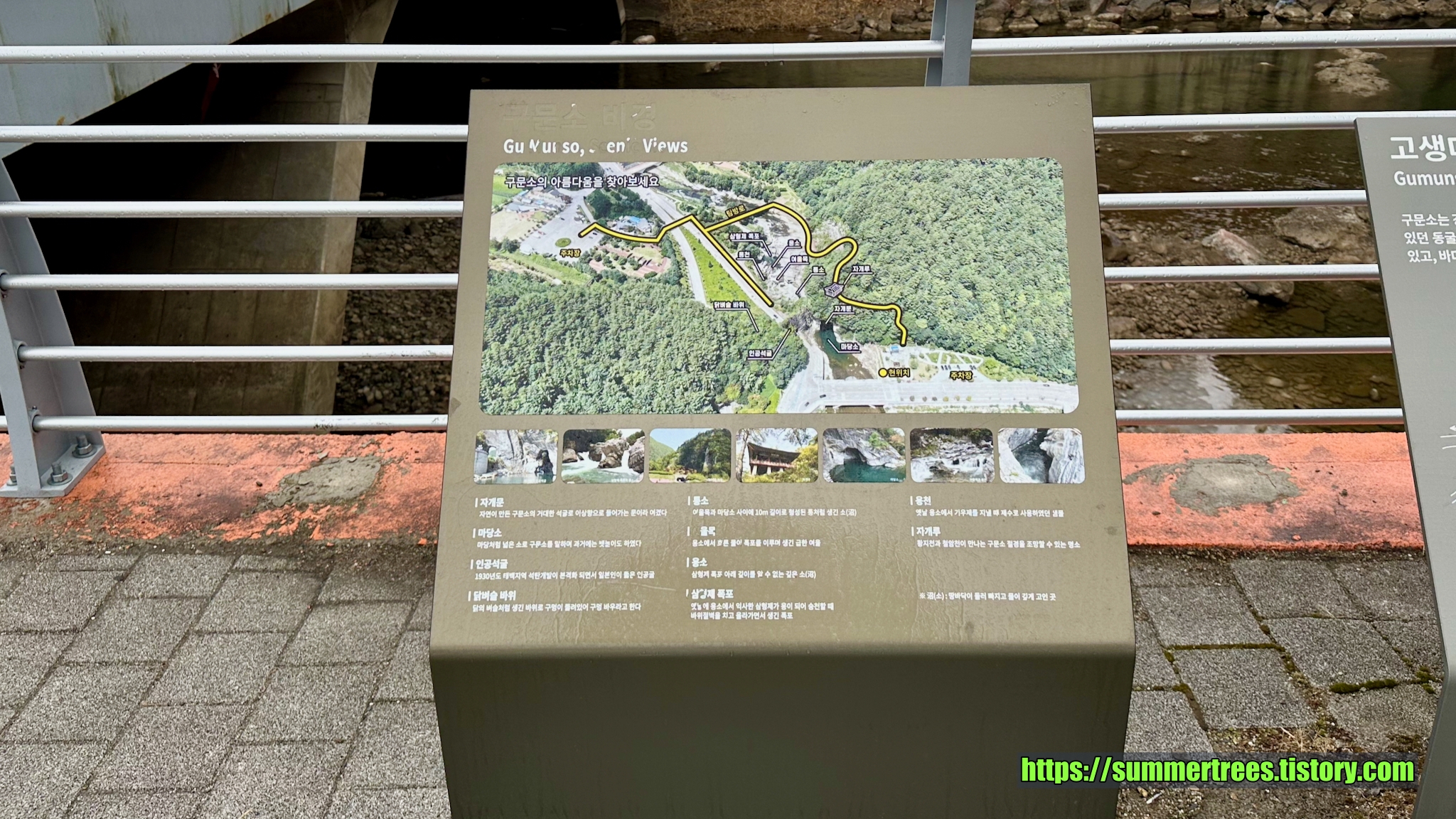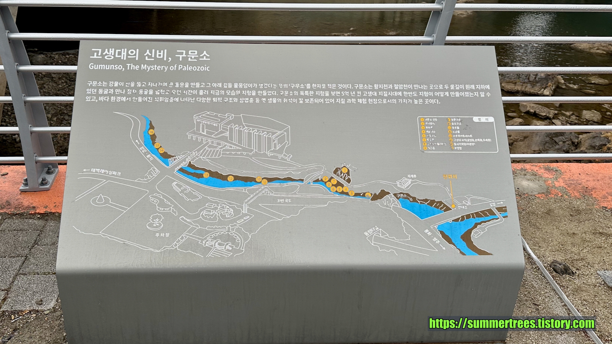 구문소를 한바퀴 돌아 데크길을 올라가면 정자가 나오는데, 정자를 돌아 아래로 내려가면 처음 주차했던 주차장이 나온다.