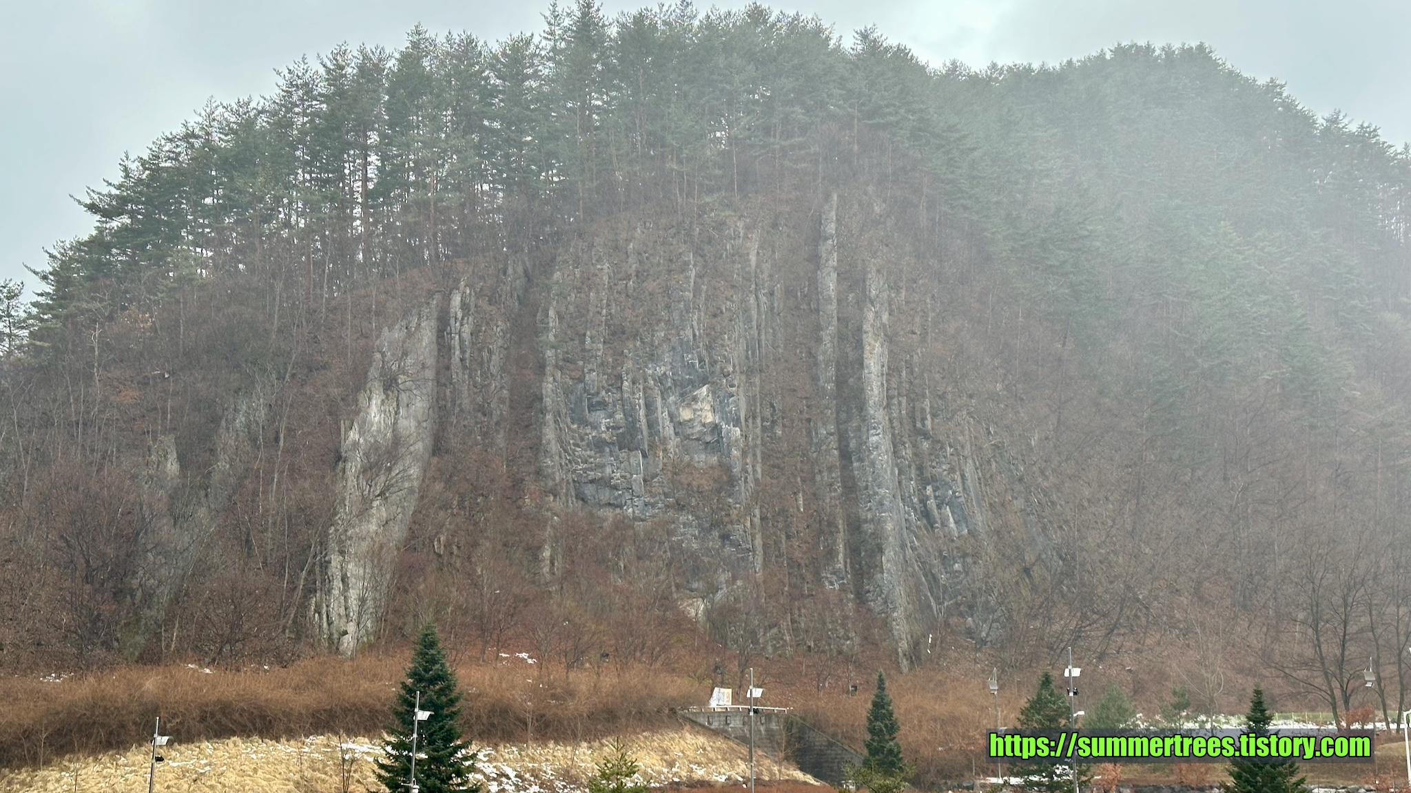 도로 건너편의 절벽은 한 술 더 떠 수직으로 뒤틀린 지층을 보여줘서 감탄스러웠다.