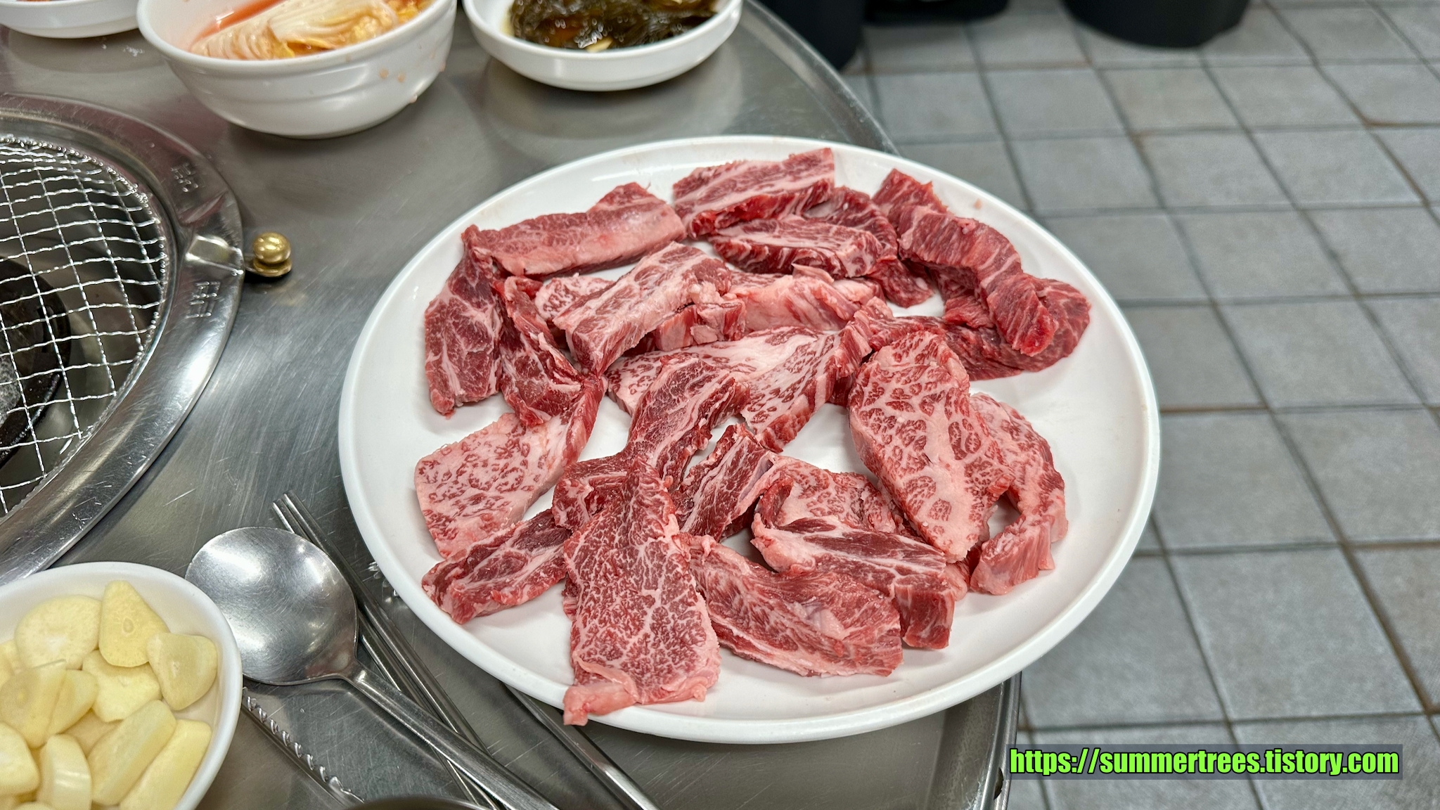 뭘 먹으면 좋을 지 물어보니 대부분 모듬을 시킨다고 해서 우리도 그렇게 주문했다. 마블링을 보니 아주 맛있어 보였다.