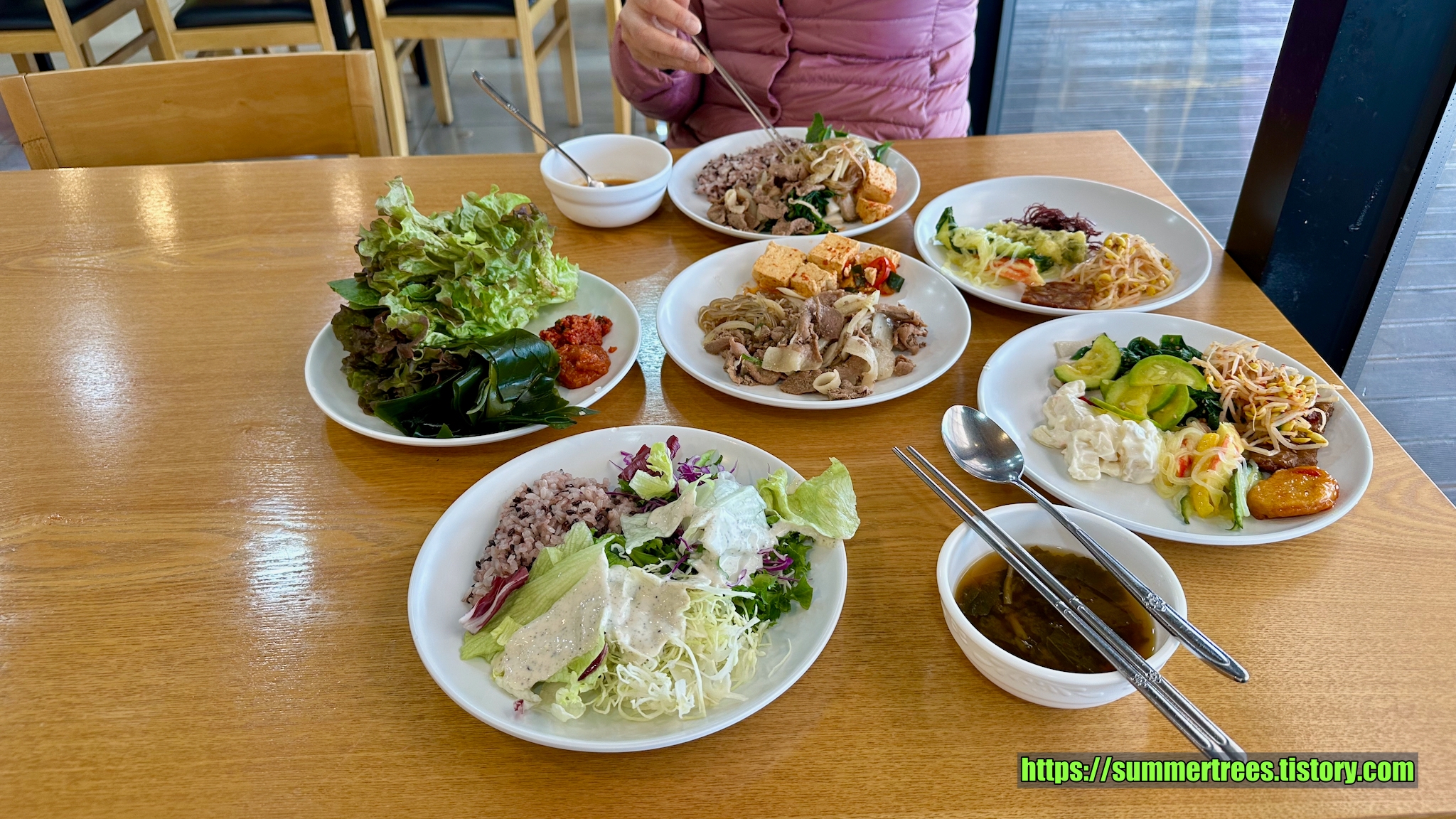 아침은 항상 칠곡의 자율식당. 둘이 먹으면 그리 비싸진 않다. 반찬 하나 더 곁들여도 될 예산인데 오히려 일반식당보다 싸게 먹었다. 고물가시대에는 역설적으로 예전에 비쌌던 것들이 싸졌다.