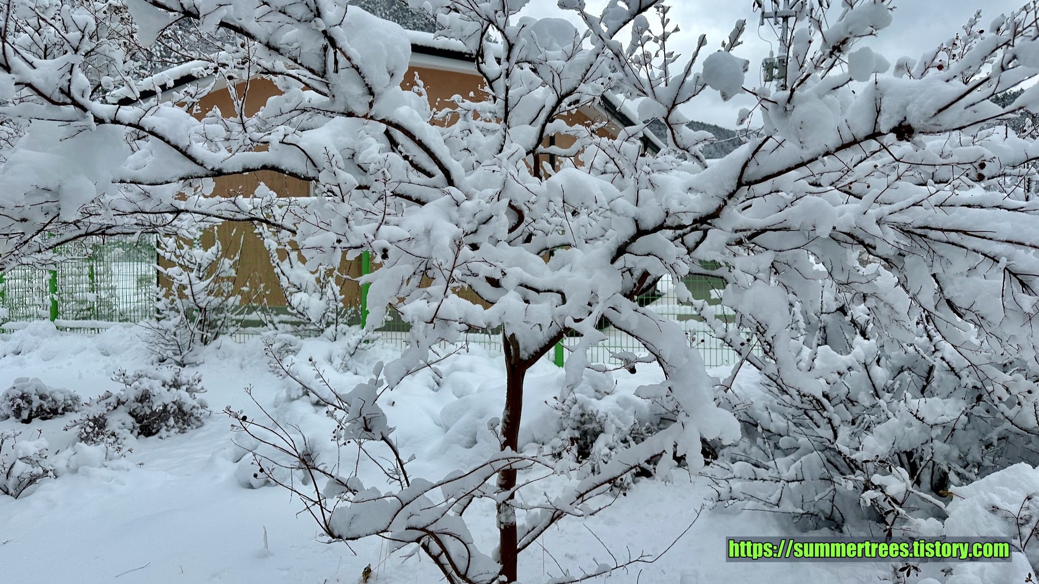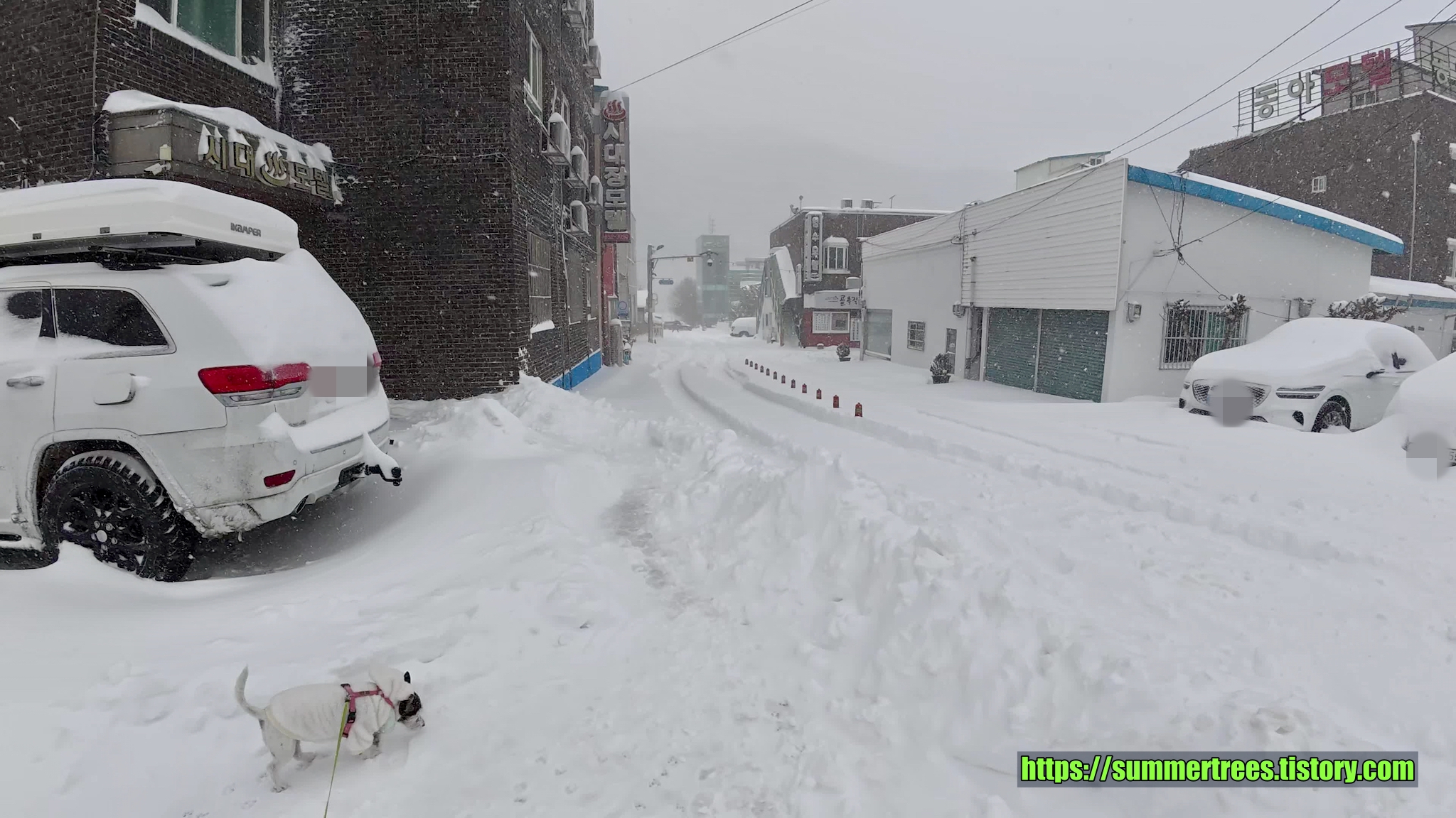 눈이 너무 쌓여서 마야가 제대로 걸을 수 없는 정도였다.