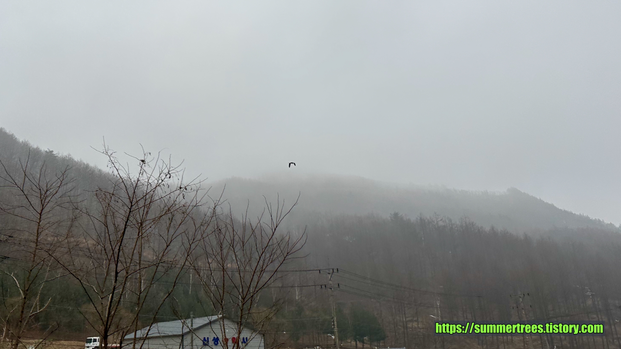 큰 새가 우리와 같은 방향으로 날았는데, 같이 나는 느낌이었다.