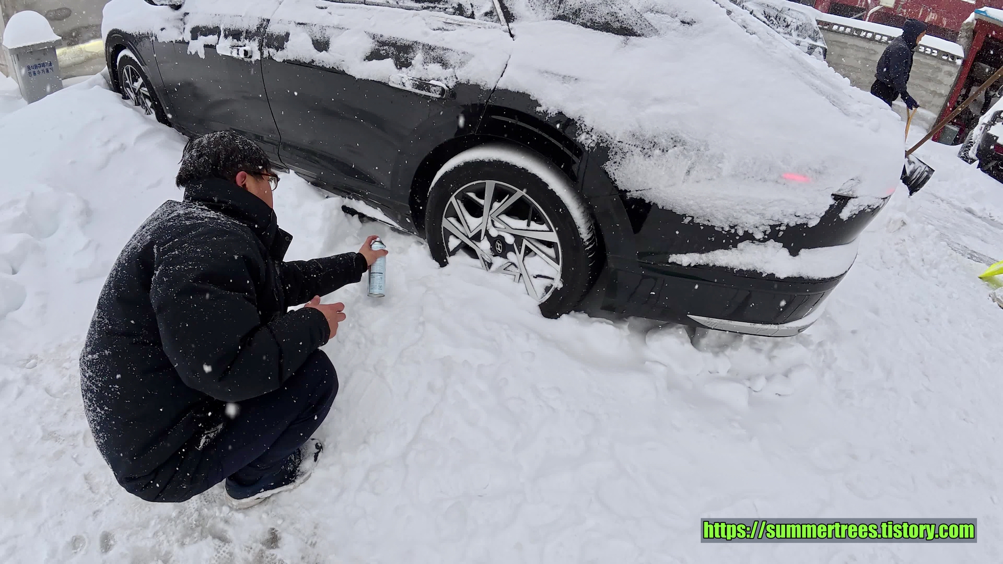오프로드차가 세 대가 왔는데 그 차들이 쌓인 눈을 밟으며 지나간 덕분에 우리 차도 나올 수 있었다.