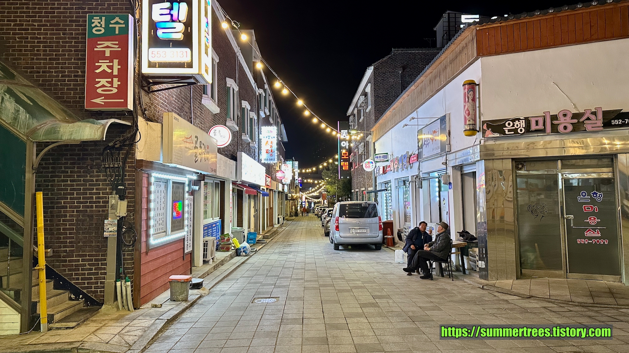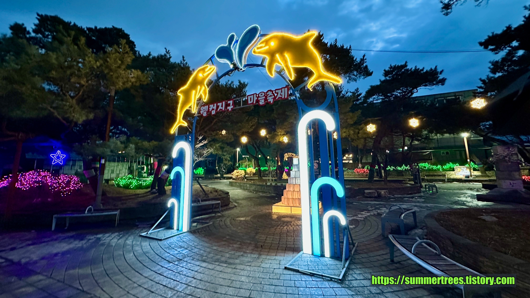 마침 숙소 부근에 조그만 공원이 있고, 야간 조명을 이쁘게 해놨다.