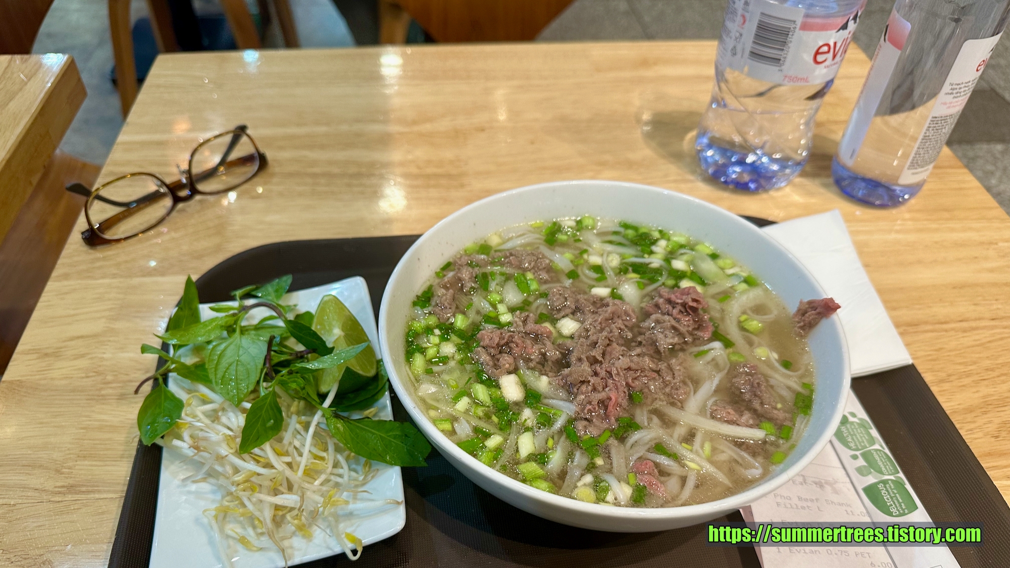 탑승구역에서 쌀국수를 먹었는데, 역시 내 입맛엔 맛지 않았다. 물도 주지 않는 비행기라 물도 두 병 준비.