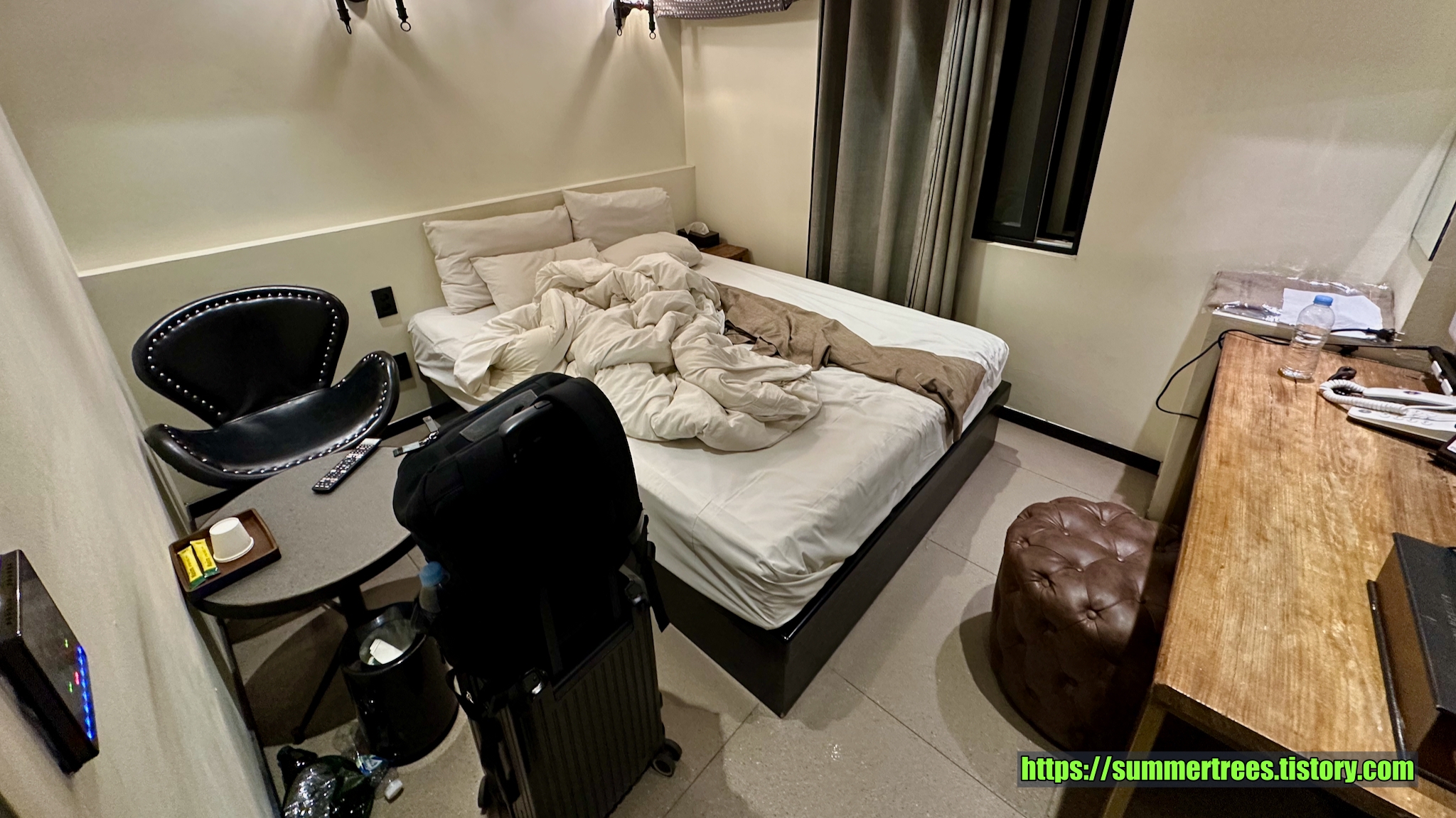 4성급 깔끔한 호텔. 그런데 영어가 제대로 통하지 않는다. 당황스럽다.외관은 멋진 호텔처럼 보인다.도로변 출입구는 호텔이 아니라 마사지샵이다.객실은 깔끔하고 업무를 보기 편한 책상이 있