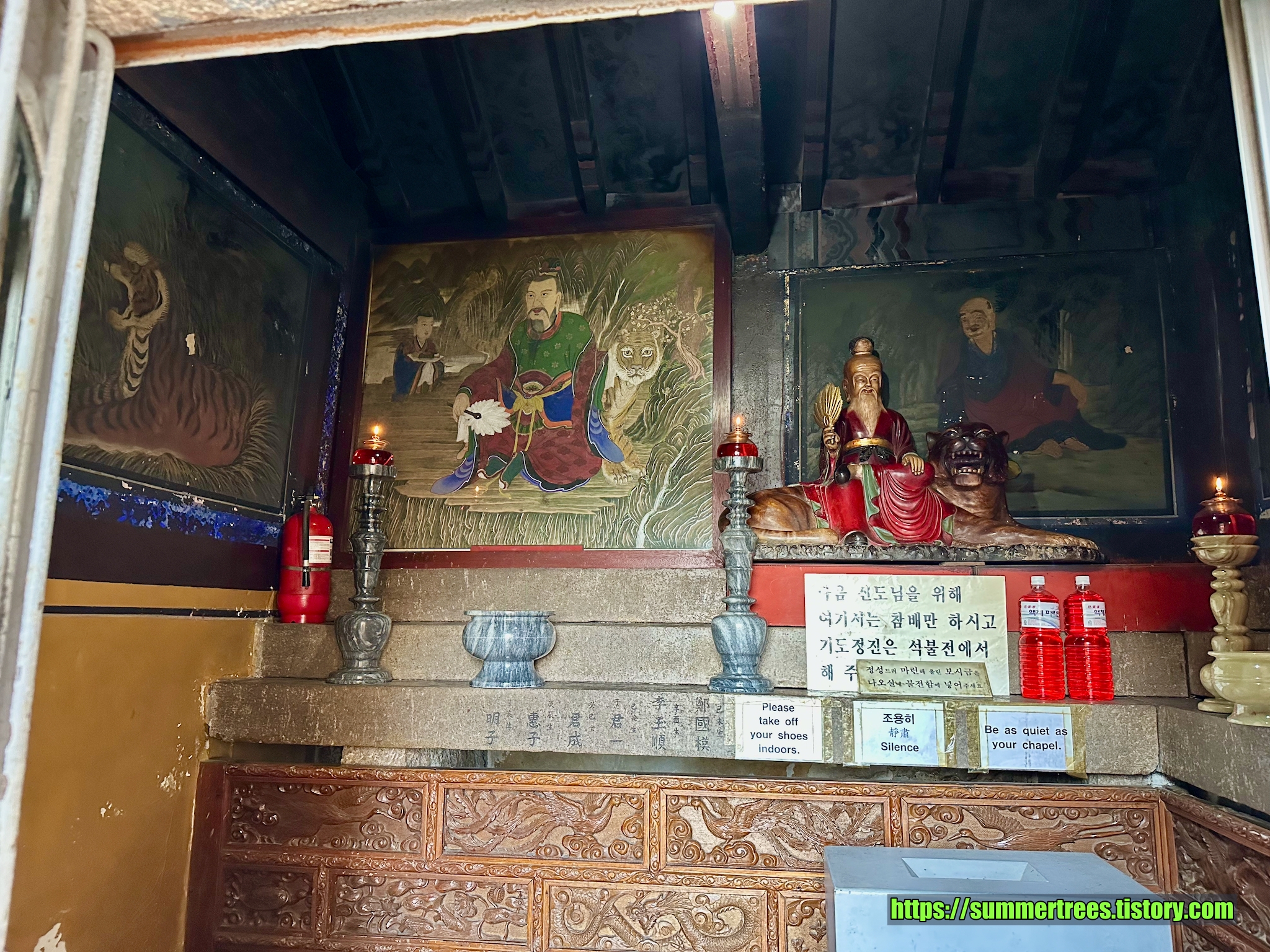 왼쪽의 석불들은 만든 지 좀 된 듯하고 오른쪽은 새로 만들었는지 색이 하얬다.