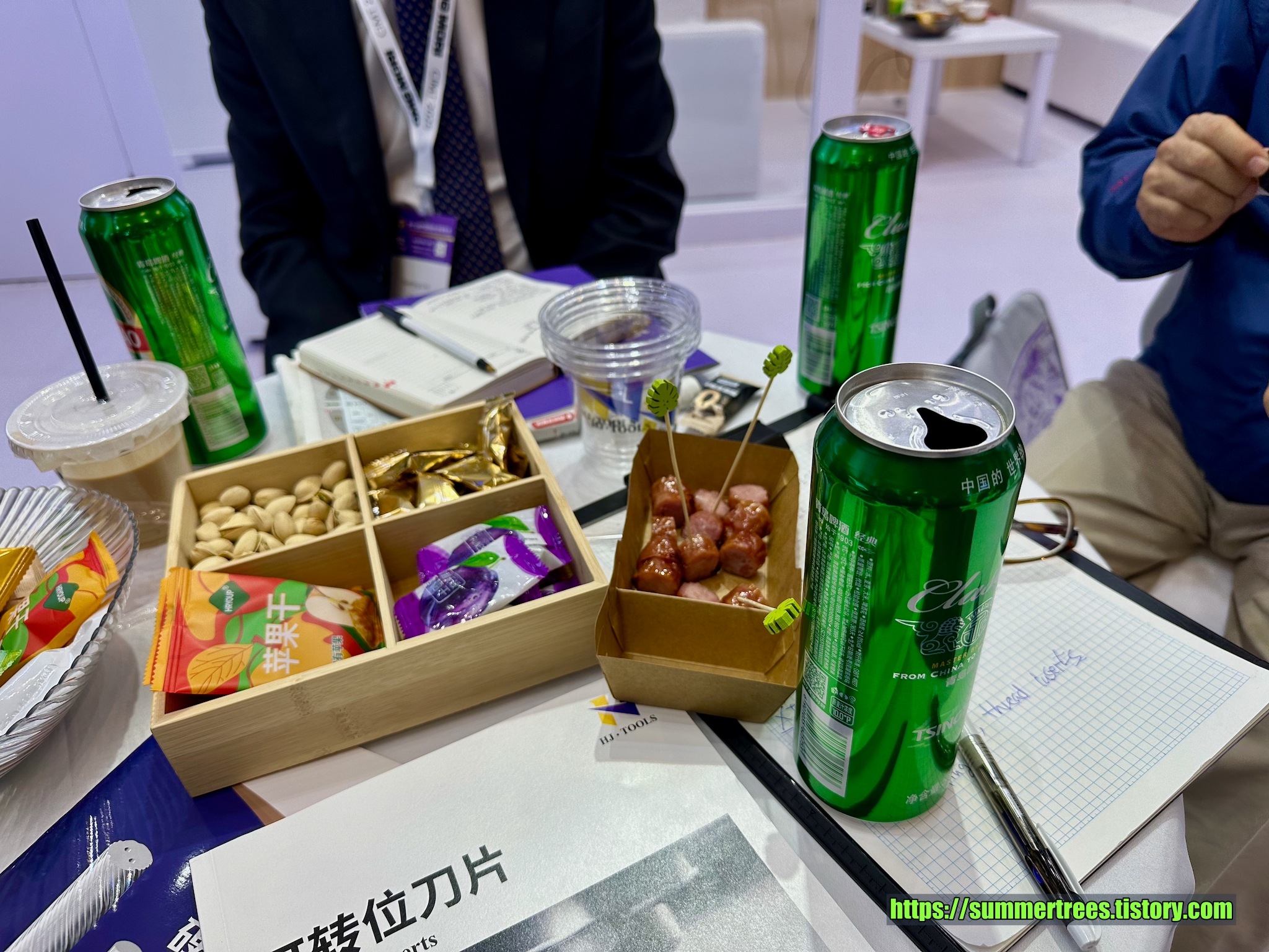 어느 부스를 찾아갔을 때 한국인이라 그러니 맥주와 소시지 안주를 내준다. 역시 칭따오 맥주는 맛있었다.