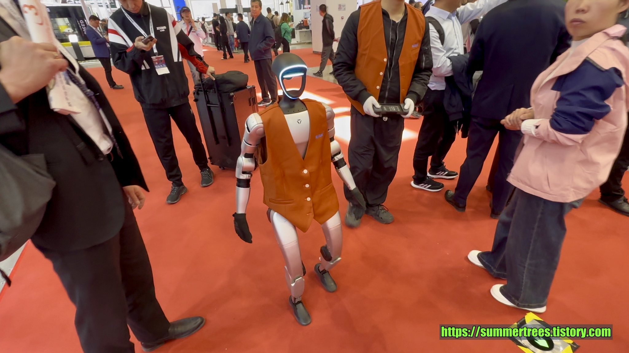 전시장을 돌아다니는 걷는 로봇. 귀여웠다. 가만 보면 될텐데 꼭 툭툭 치거나 넘어뜨리려는 사람이 있다. 이 로봇은 혼자 걷기는 하지만 곁에서 리모컨으로 방향을 지시하는 사람이 따라다녔다.