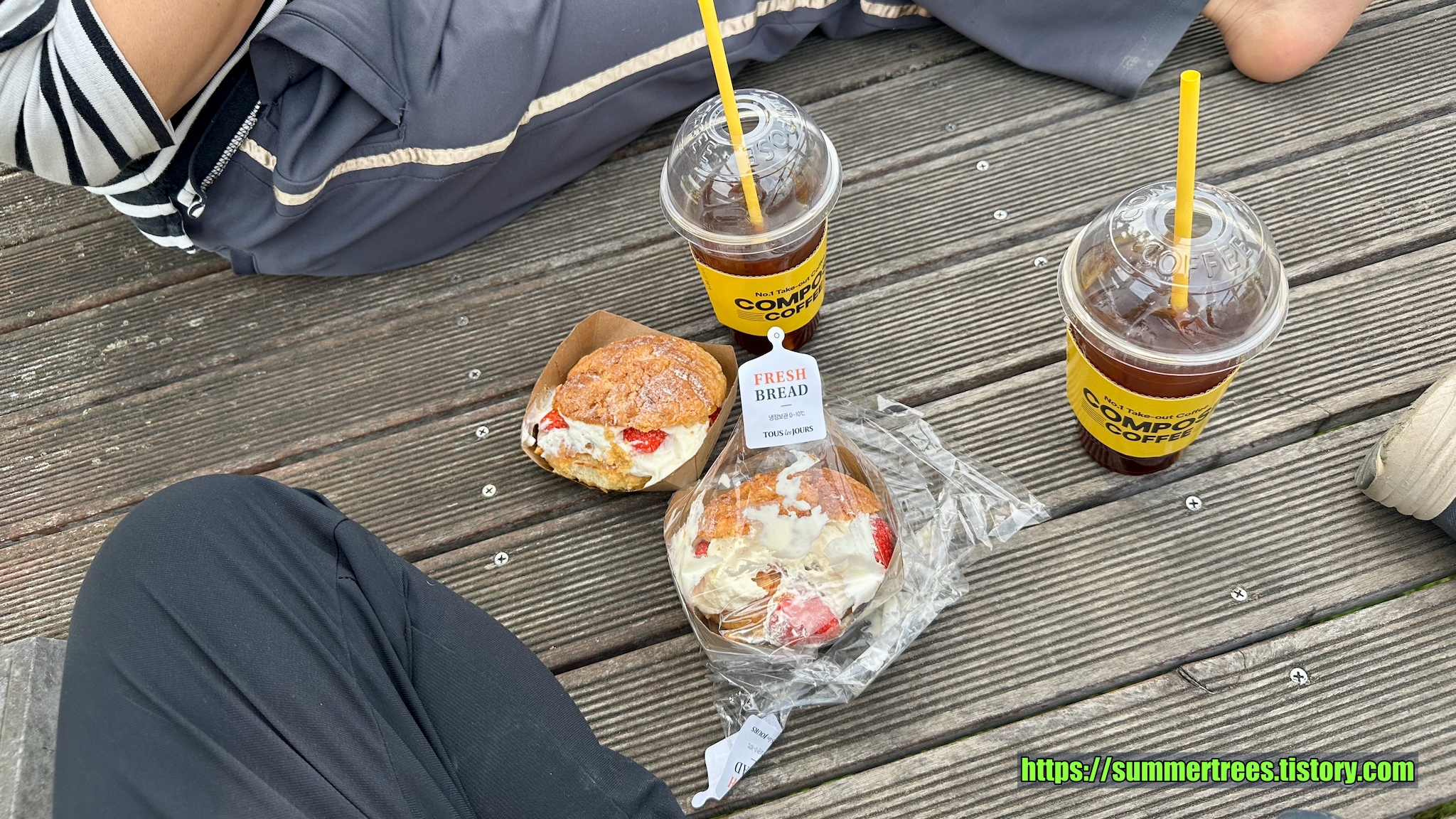 역시 뚜레주르에서 빵, 컴포즈에서 커피.