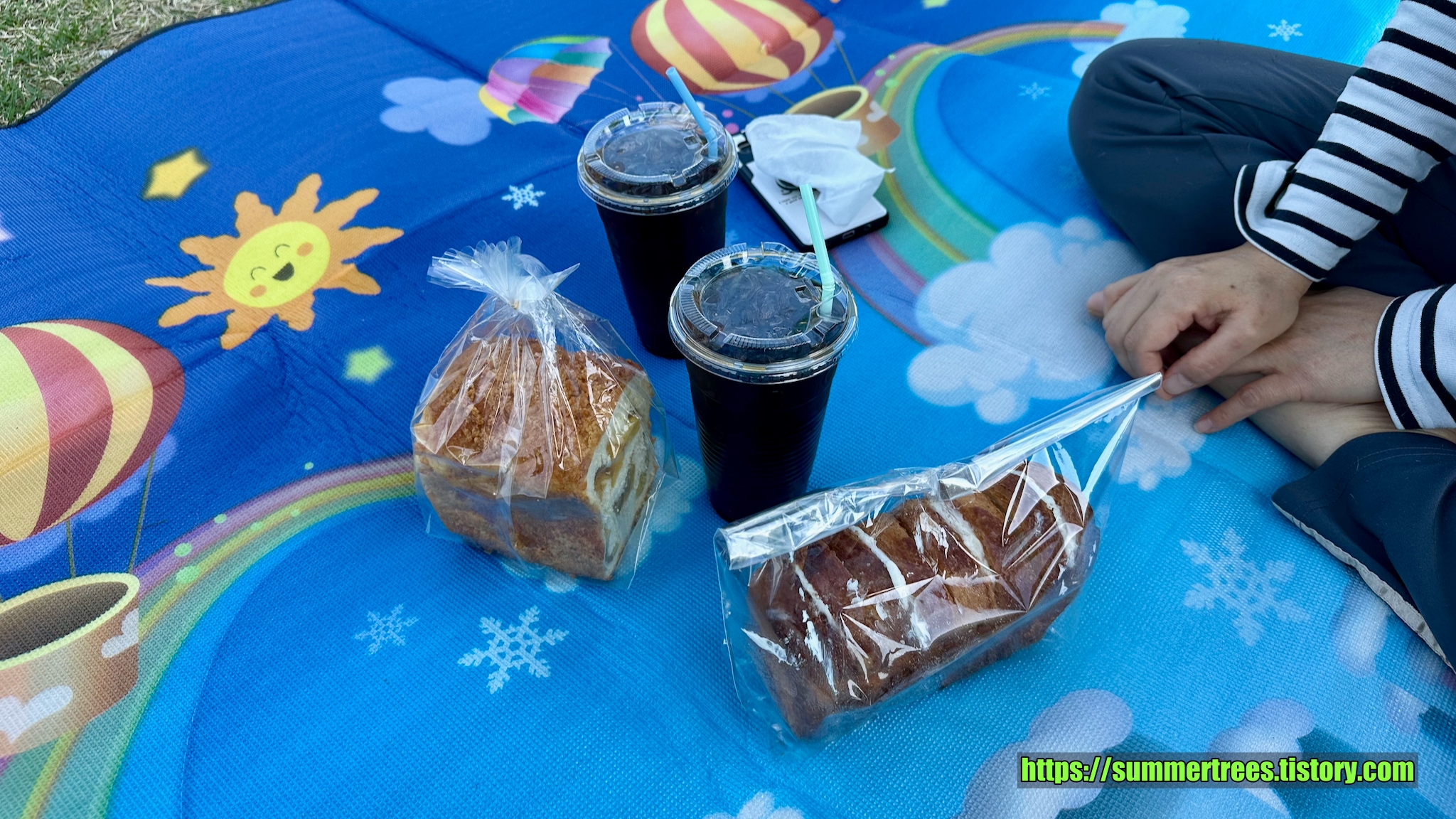 728x90뚜레쥬르에서 빵을 사고 편의점에서 커피를 사서 삼랑진 다리 밑 공원에서 먹었다.