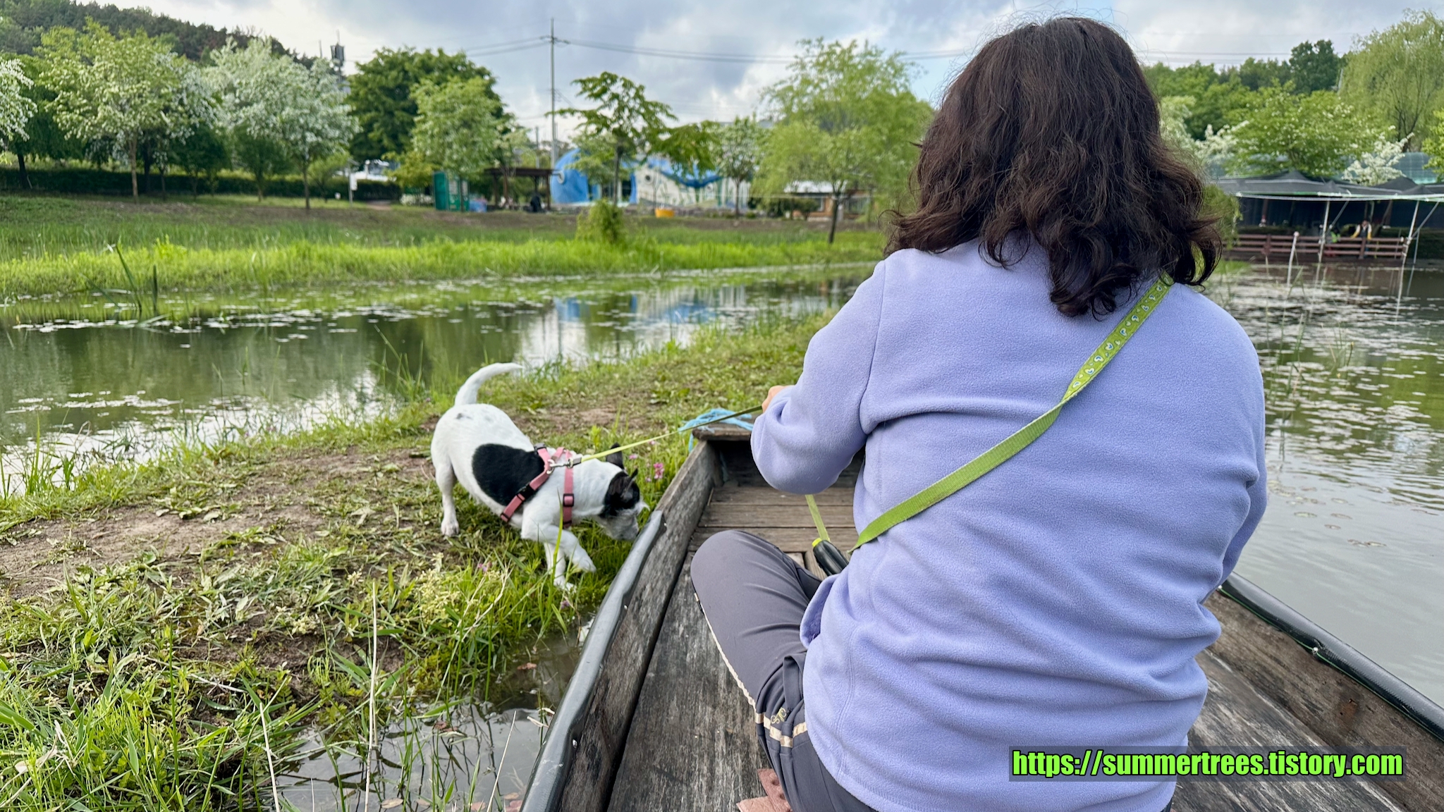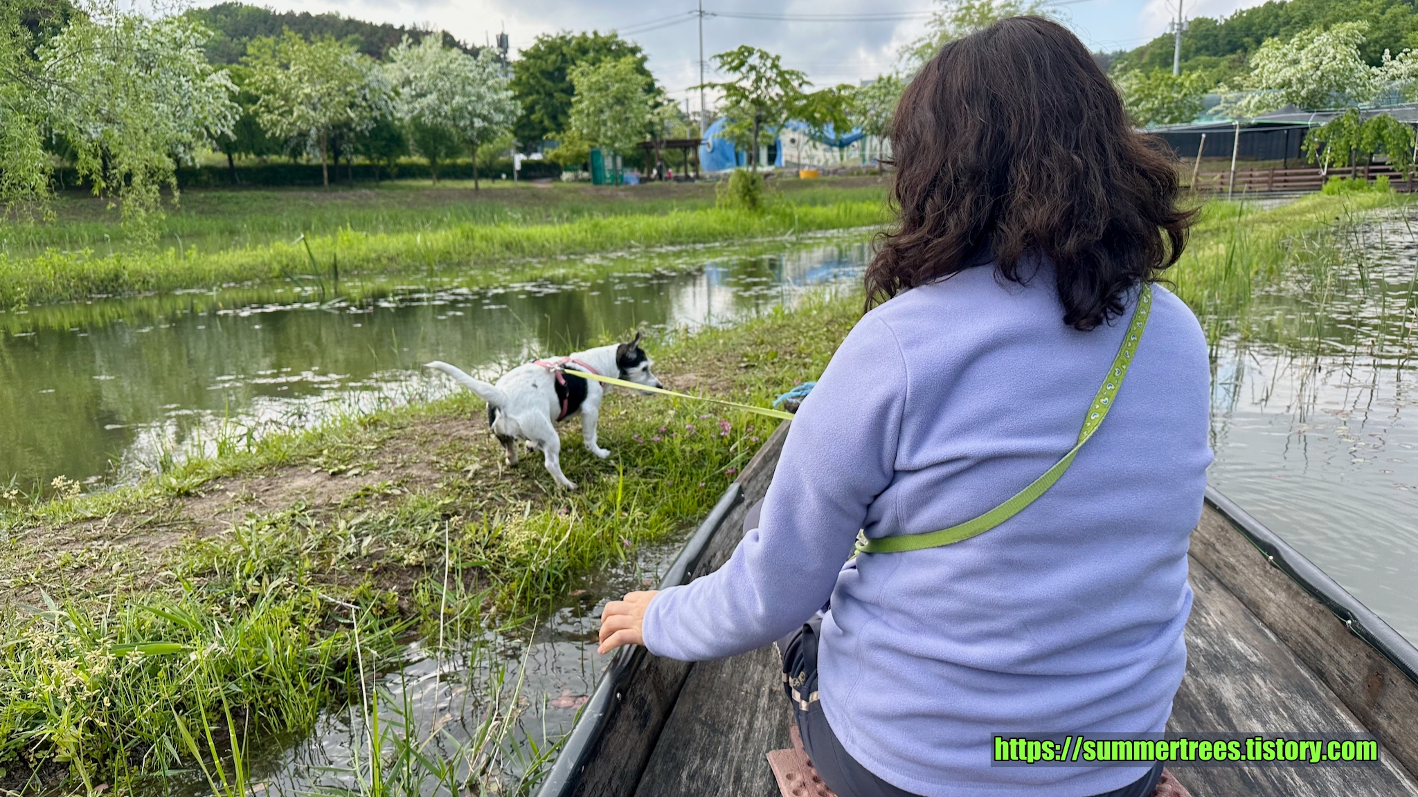 체험장 내 마련된 늪에서 한바퀴 둘러보는 것이었는데 카약을 타는 우리에겐 익숙한 물놀이 느낌이면서도 다른 방식의 배를 타는게 재미있었다.
