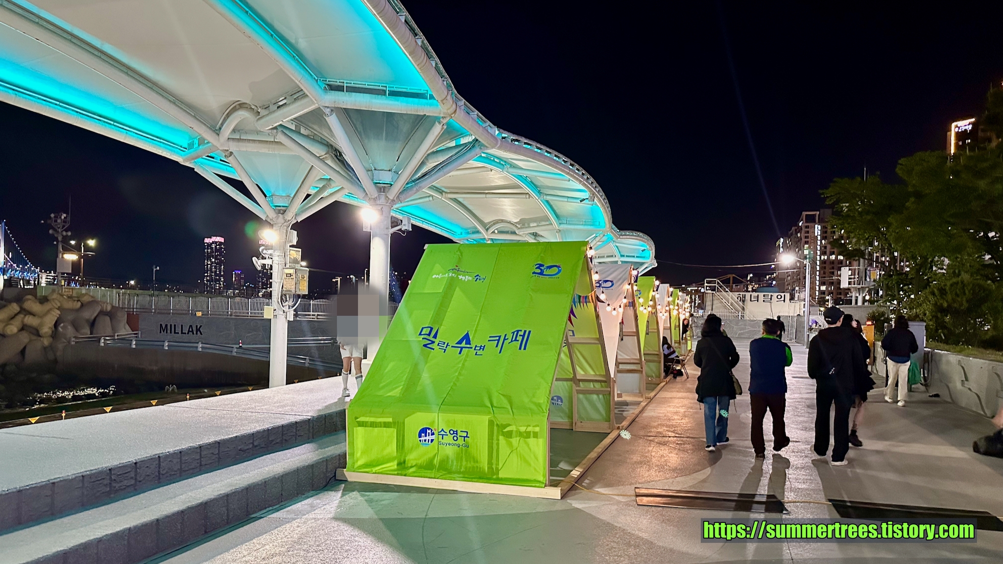 민락수변공원과 주변 회센터는 알콜섭취금지로 인해 망했다고 유튜브에서 봤는데 현실은 조금 달랐다. 수변공원엔 아기자기한 텐트가 설치되어 있고 회센터도 잘 돌아가고 있었다.