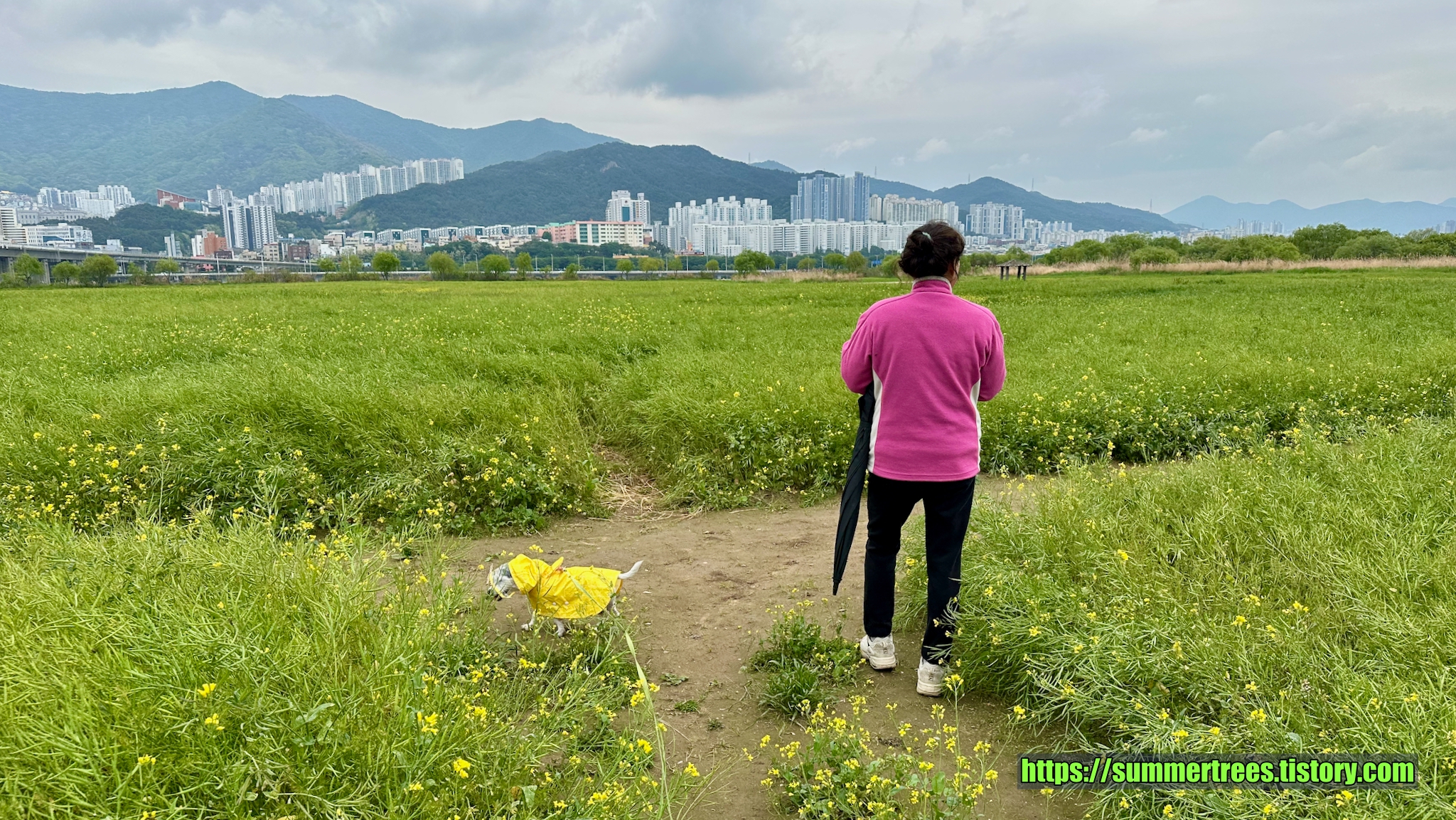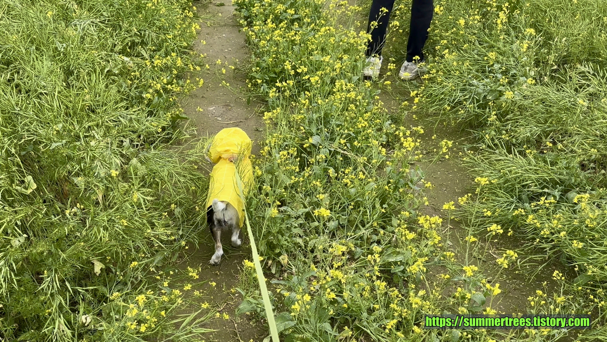 마야와 함께 유채꽃밭에서 산책을 하고 긴 연휴 마무리.