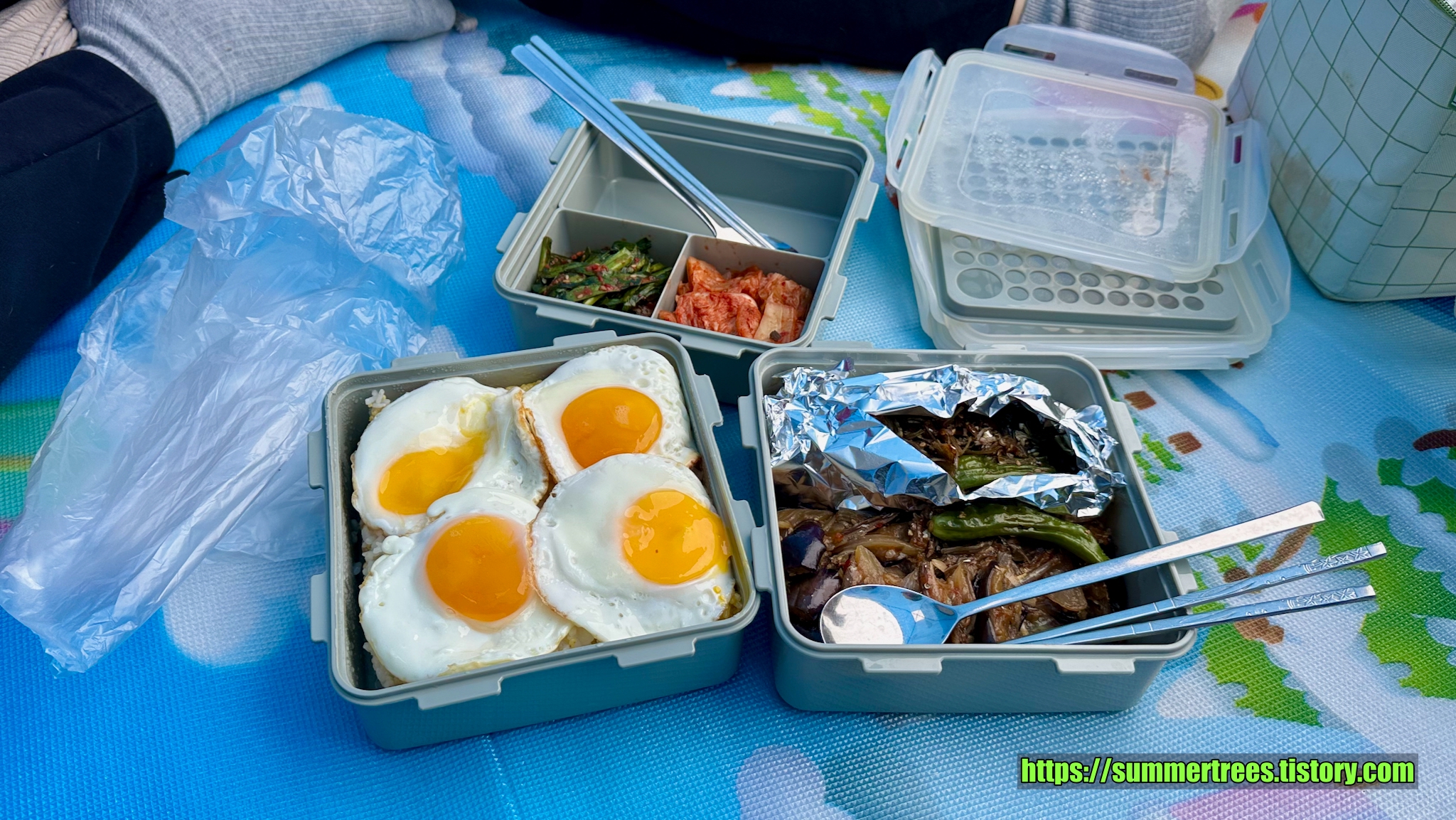 우리 도시락 메뉴는 항상 가지볶음과 꽈리고추볶음, 그리고 달걀. 고기반찬을 싸는 것보다 이 조합이 가장 맛있는 것 같다.