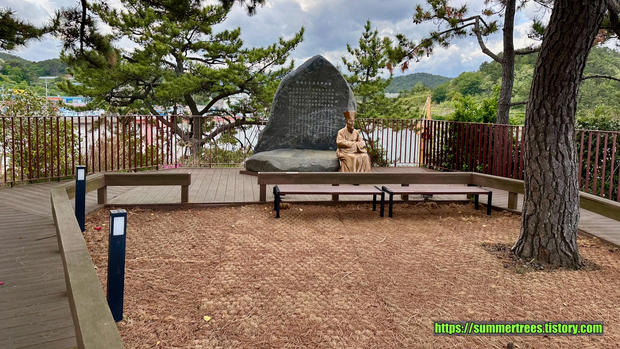죽성을 위에서 내려다 볼 수 있는 장소이고 앉아서 쉴 수 있는 의자도 있다.