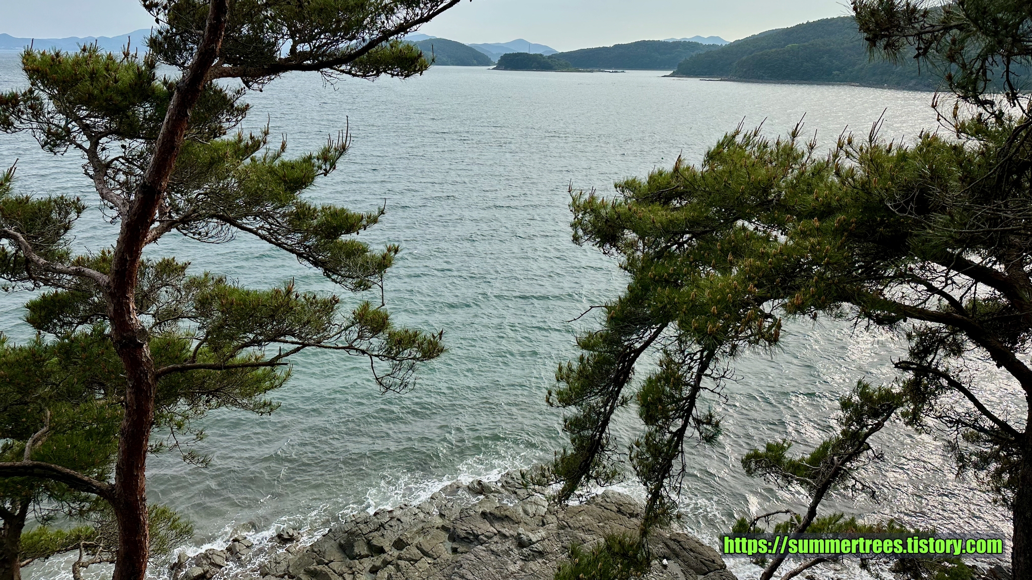 둘레길 중간 즈음 가면 잘록한 지형이 나오는데, 오른쪽으로는 잔잔한 내만의 바다를, 왼쪽으로는 외만의 거친 파도를 동시에 볼 수 있다.