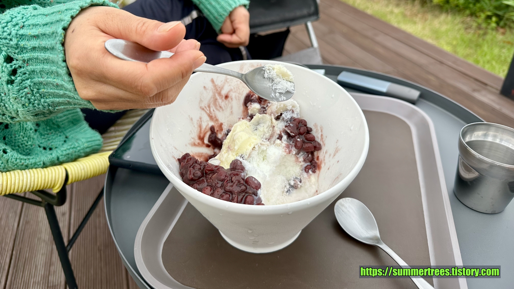 눈꽃빙수도 맛있었다. 단, 연유 같은 것이 바닥에 깔려있어 잘 섞어먹어야 한다.