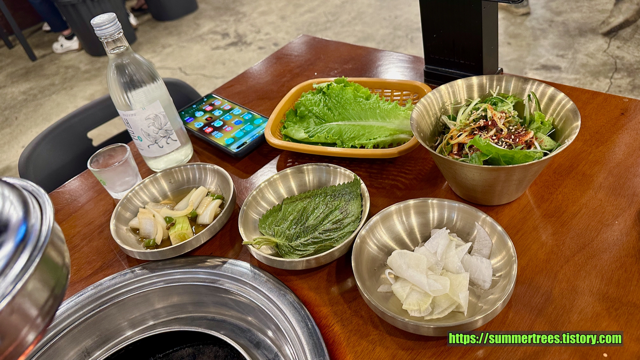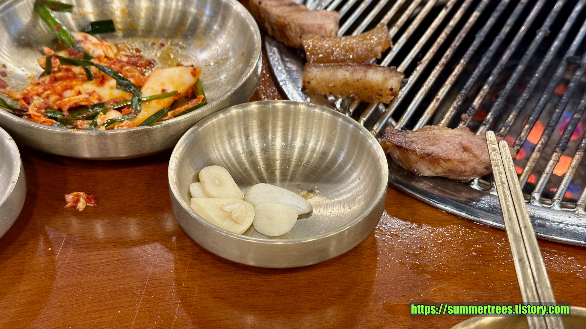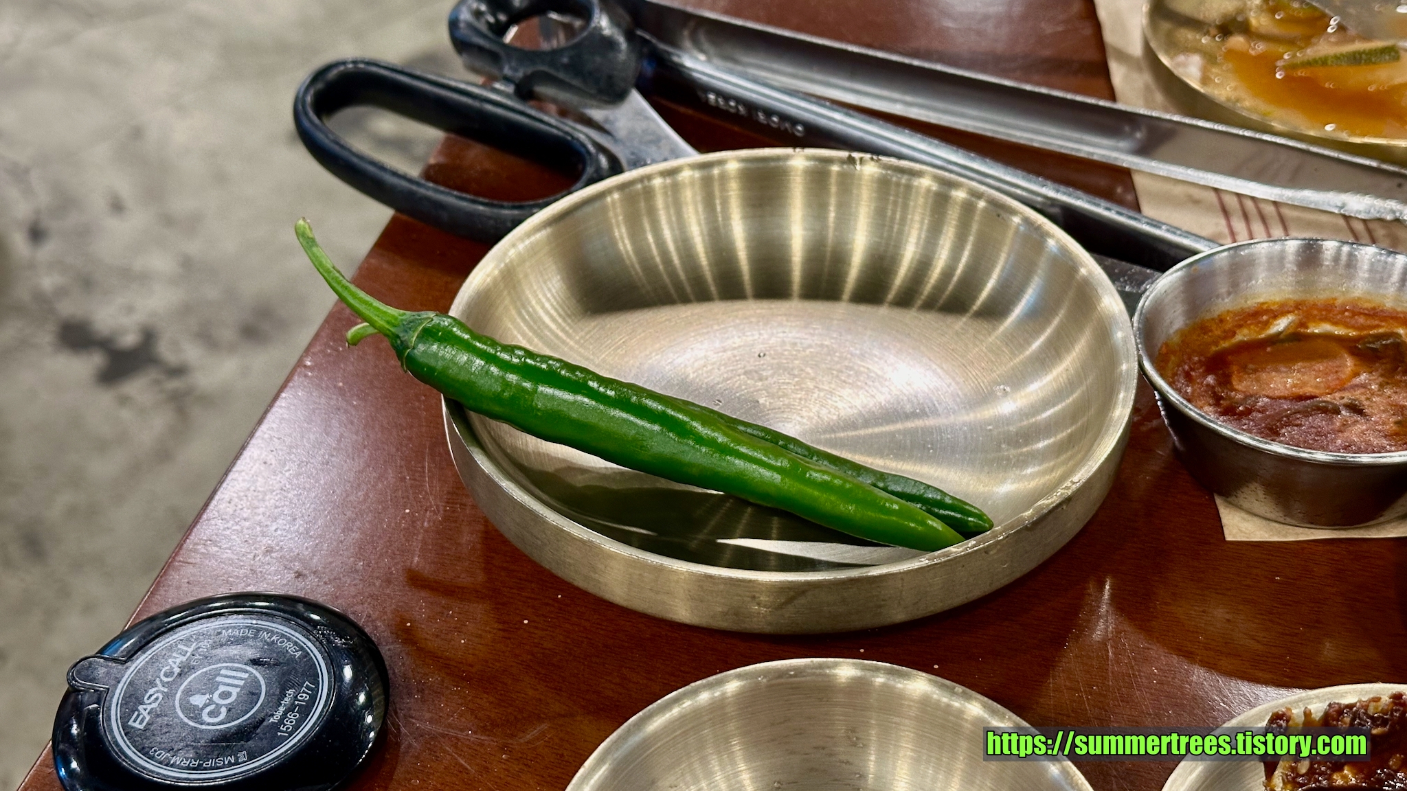 다른 테이블에 있는 고추와 마늘이 없어 물어보니 요청하면 준단다.