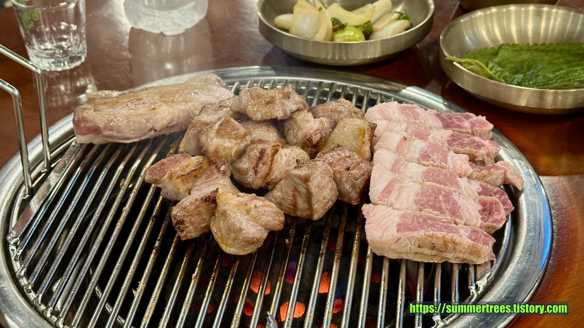 모듬을 시켰다. 그 중 목살로 보이는 것은 미리 살짝 구워서 나온다.