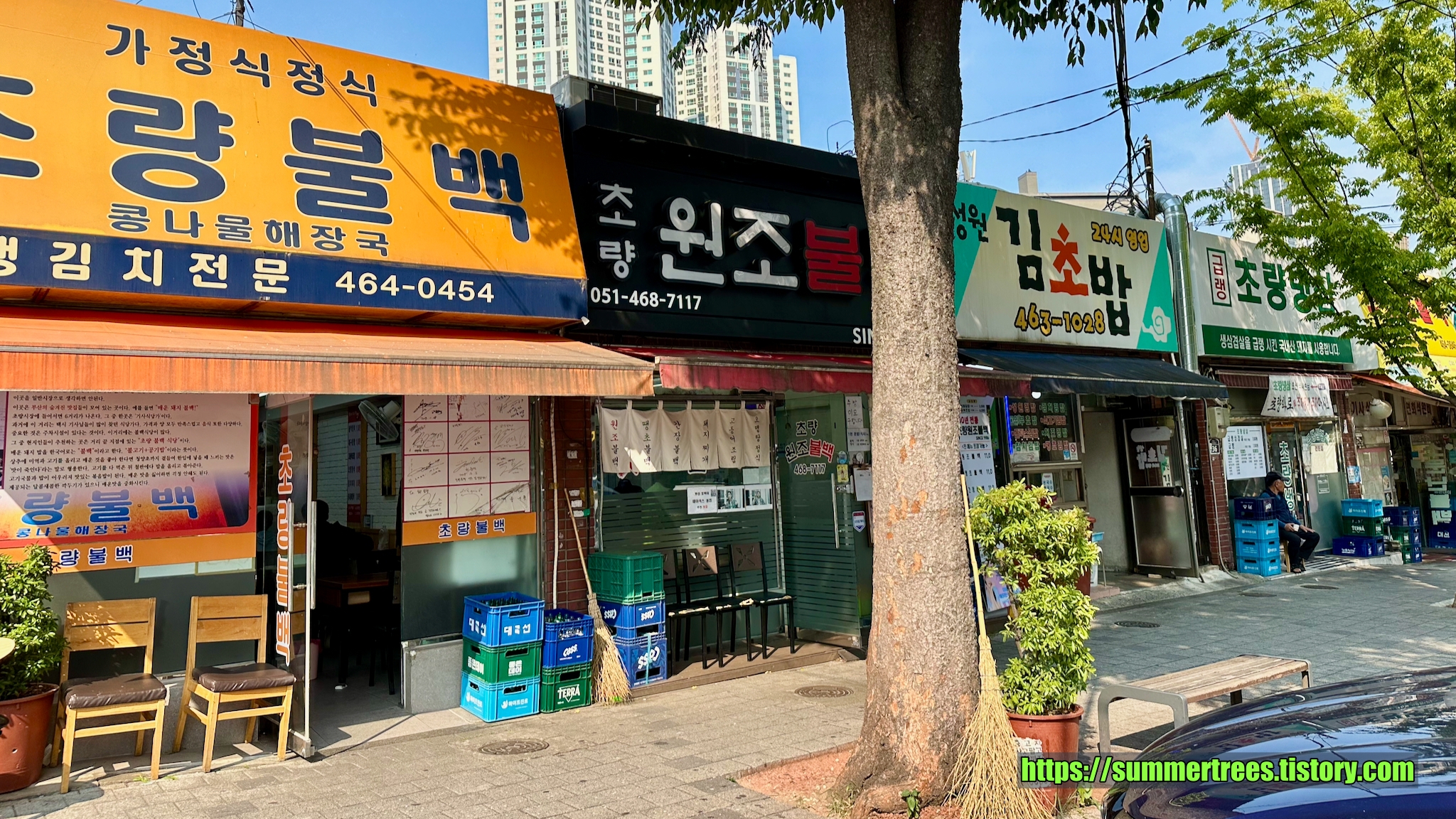 부산에선 초량불백이 유명하다. 여러 불백집들이 서로 다닥다닥 붙어서 손님을 모은다.