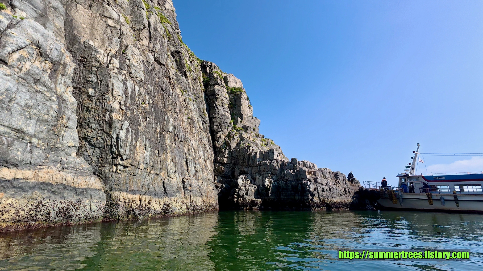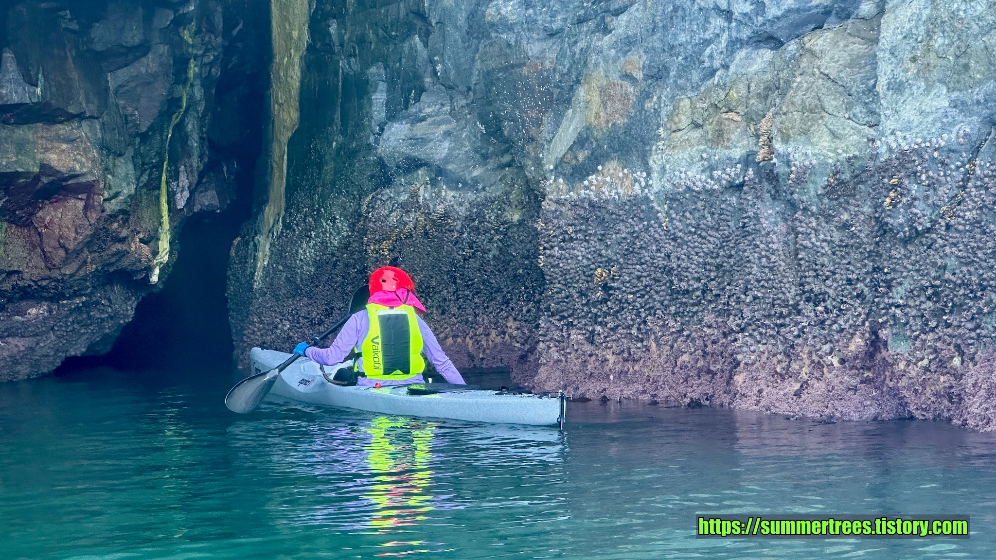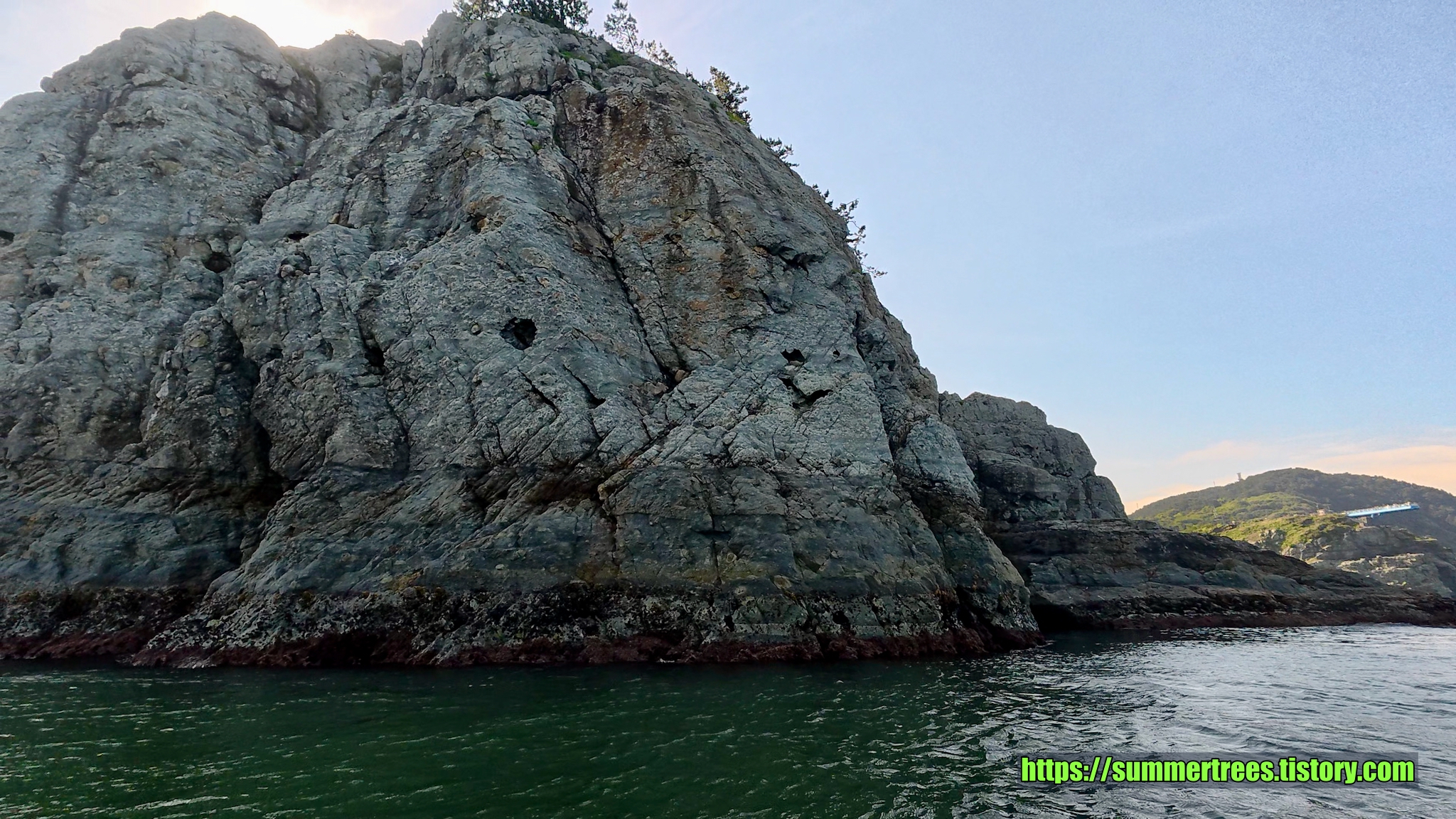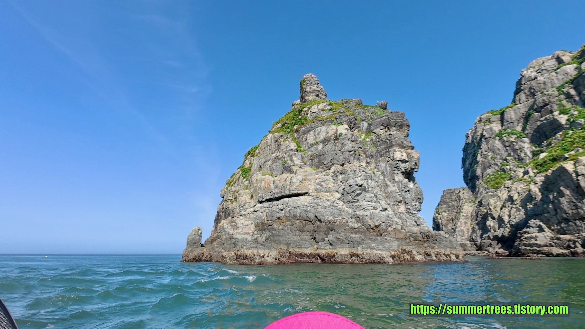 굴섬을 돌아가면 움푹 들어간 골이 보이고 그 안쪽으로 굴이 보인다. 굴까지는 무서워서 못들어감.