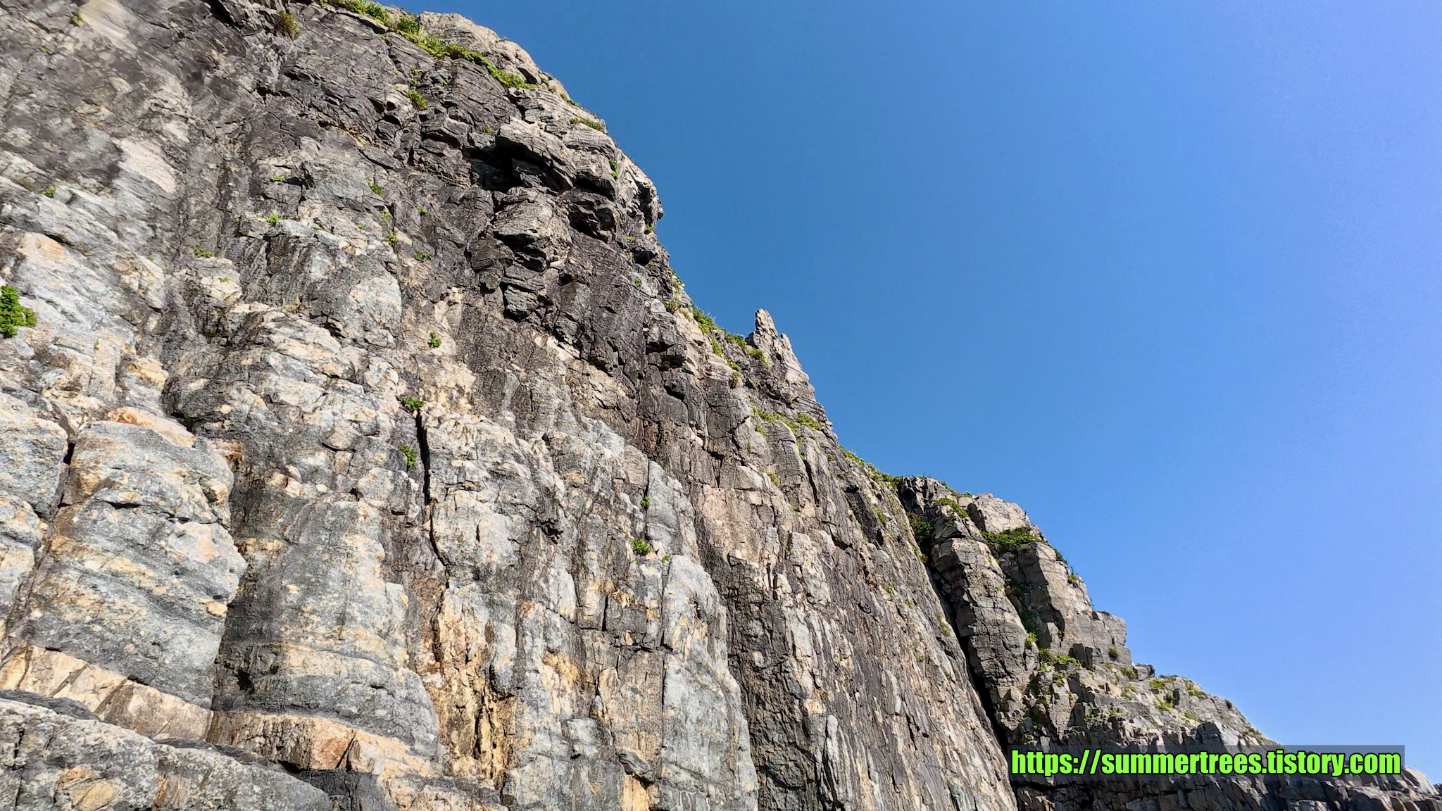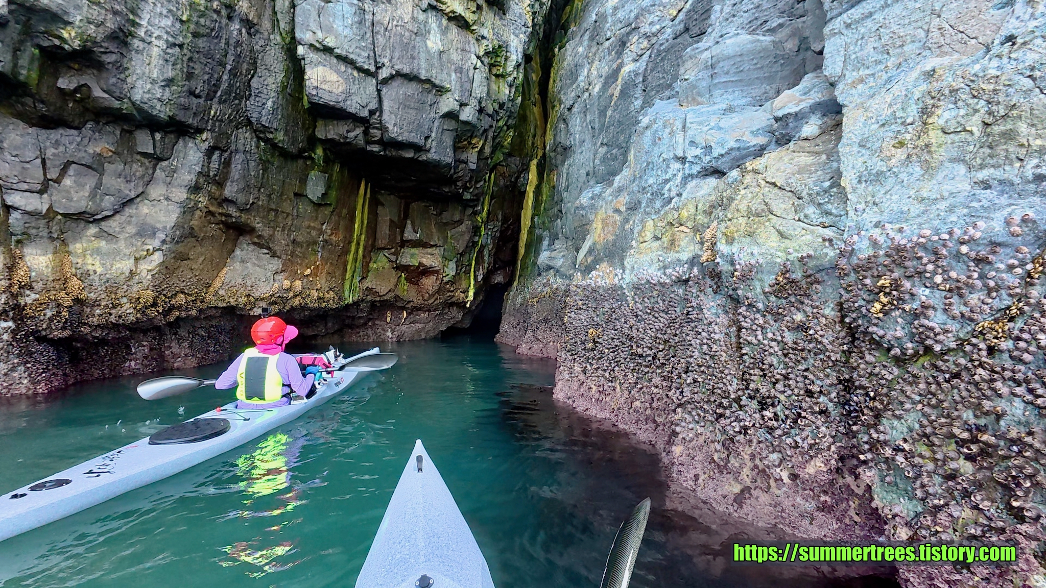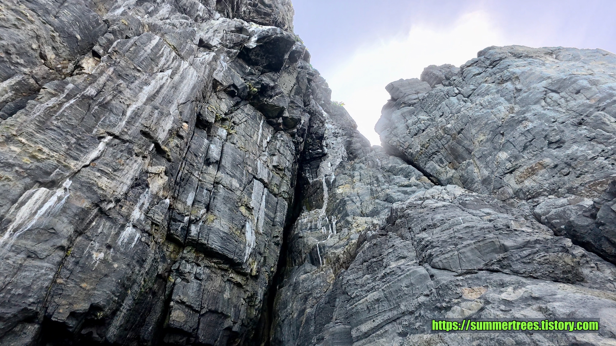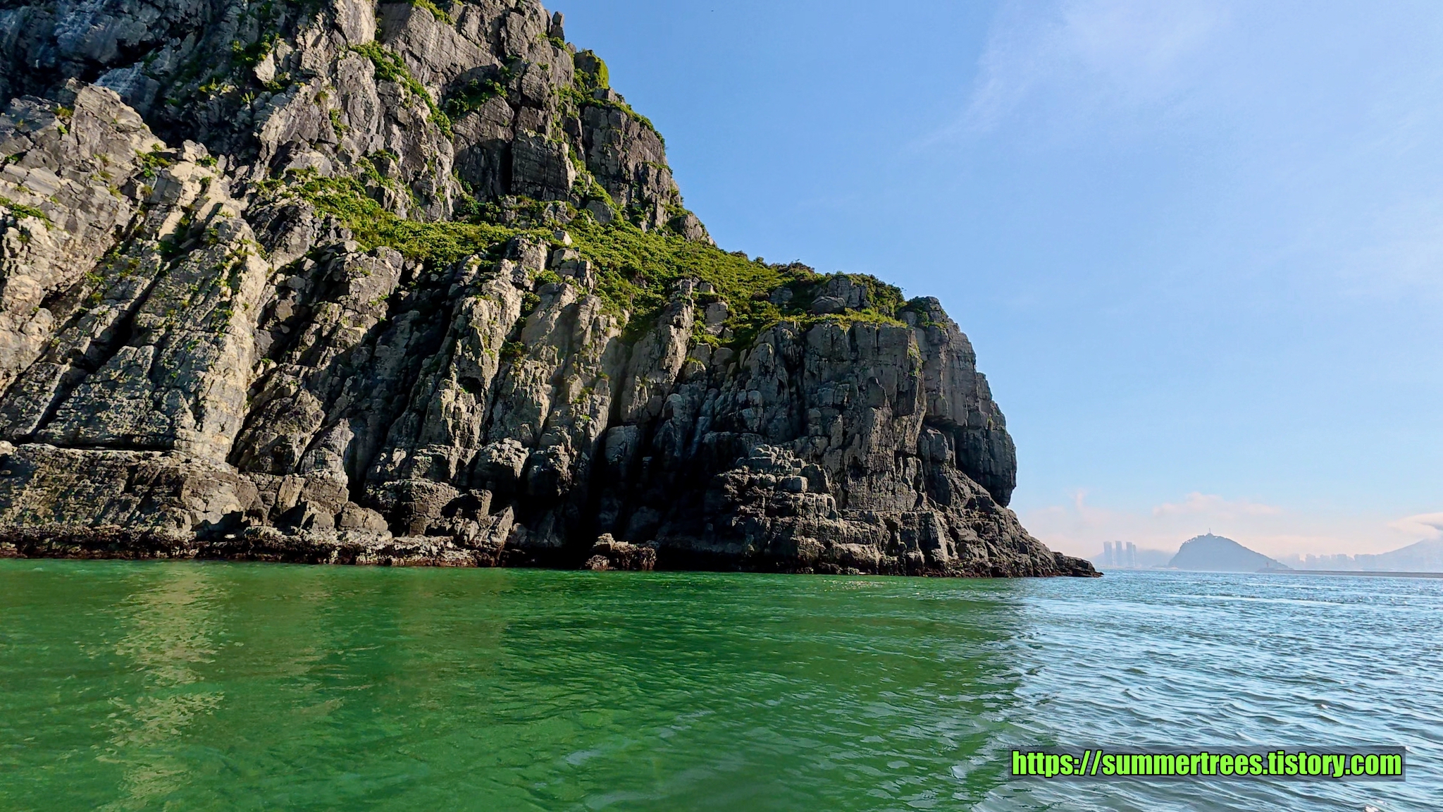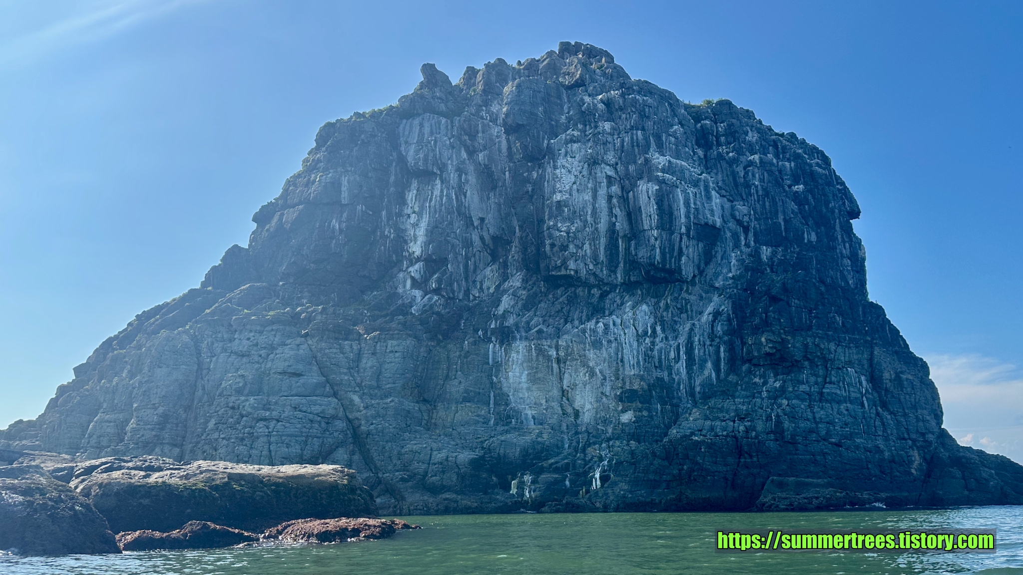 굴섬을 돌아가면 움푹 들어간 골이 보이고 그 안쪽으로 굴이 보인다. 굴까지는 무서워서 못들어감.