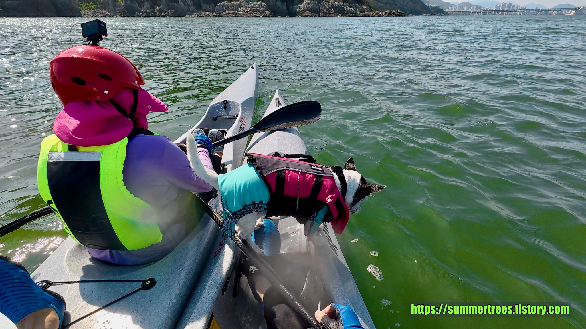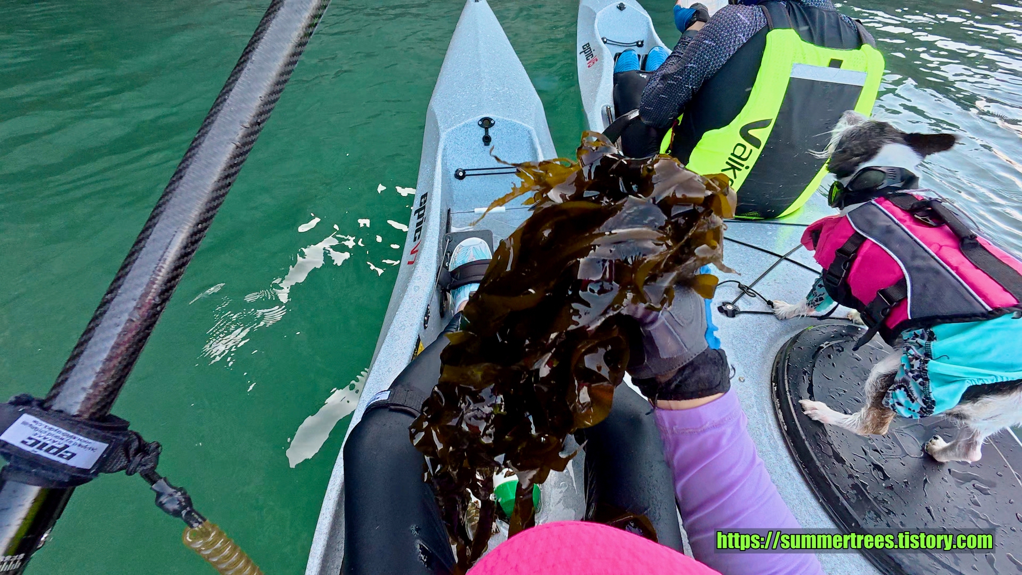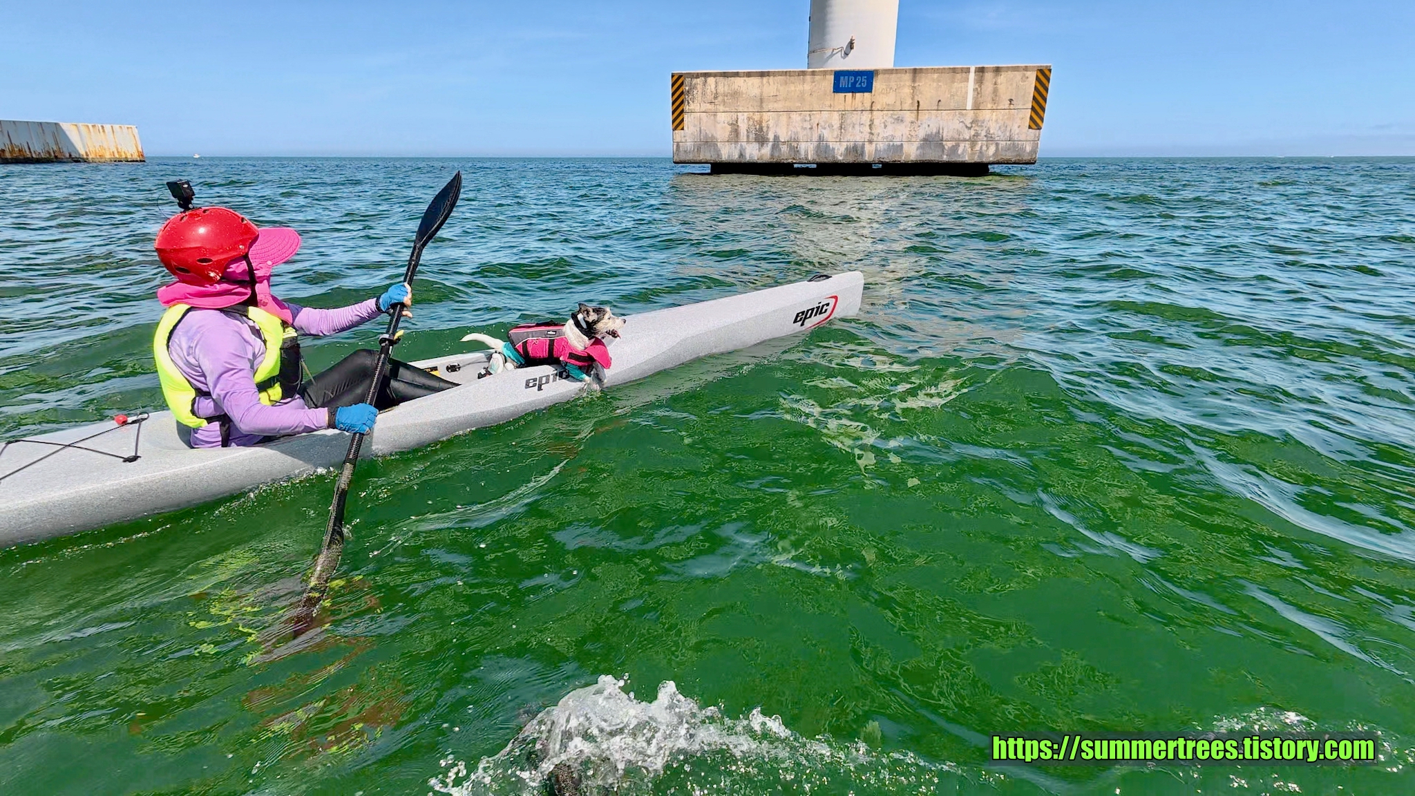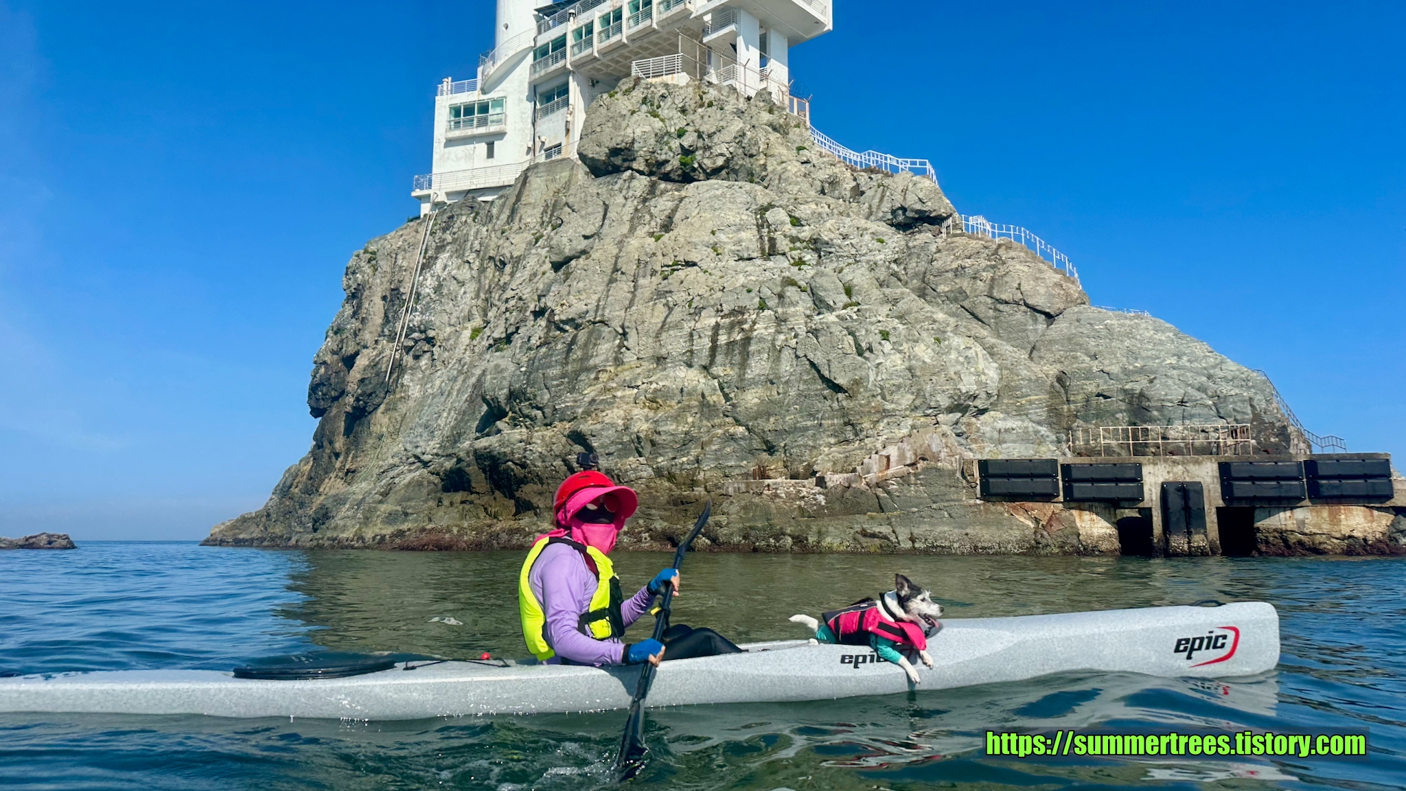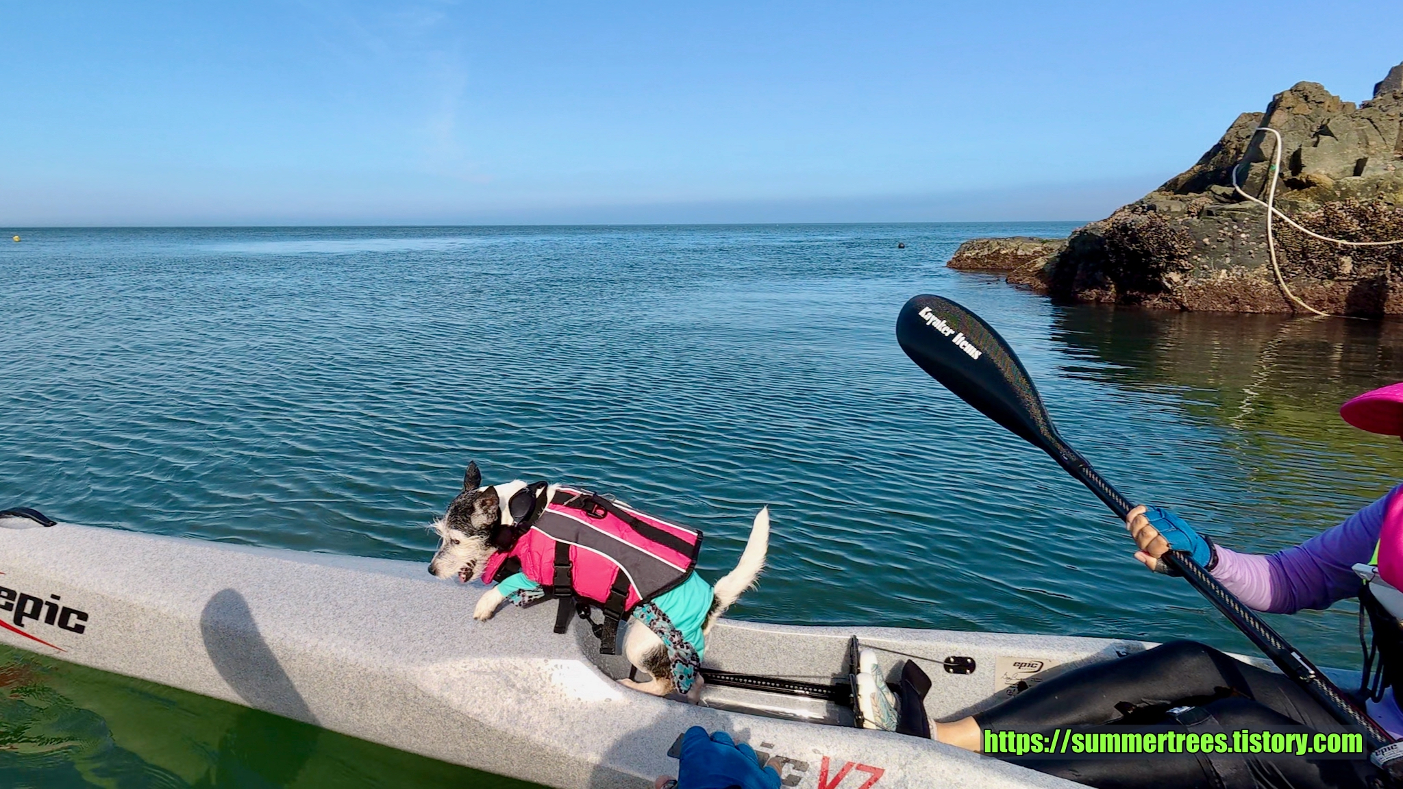 송곳섬과 수리섬 사이에 빠른 조류대가 있다. 초보 시절엔 바짝 겁먹었던 조류다. 이제 신나게 탄다.