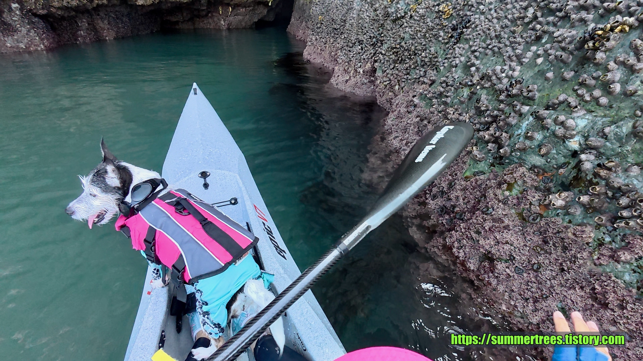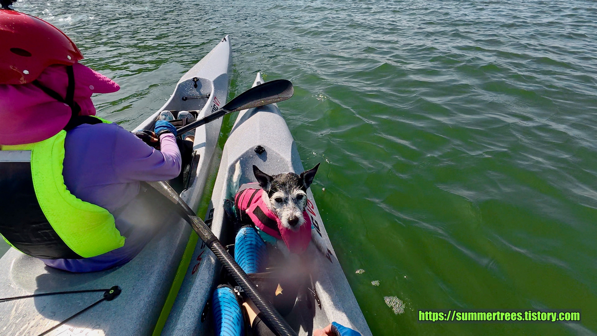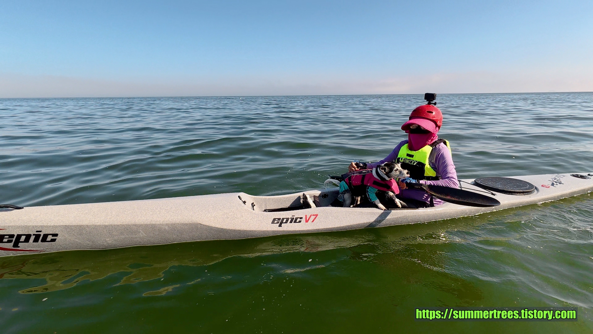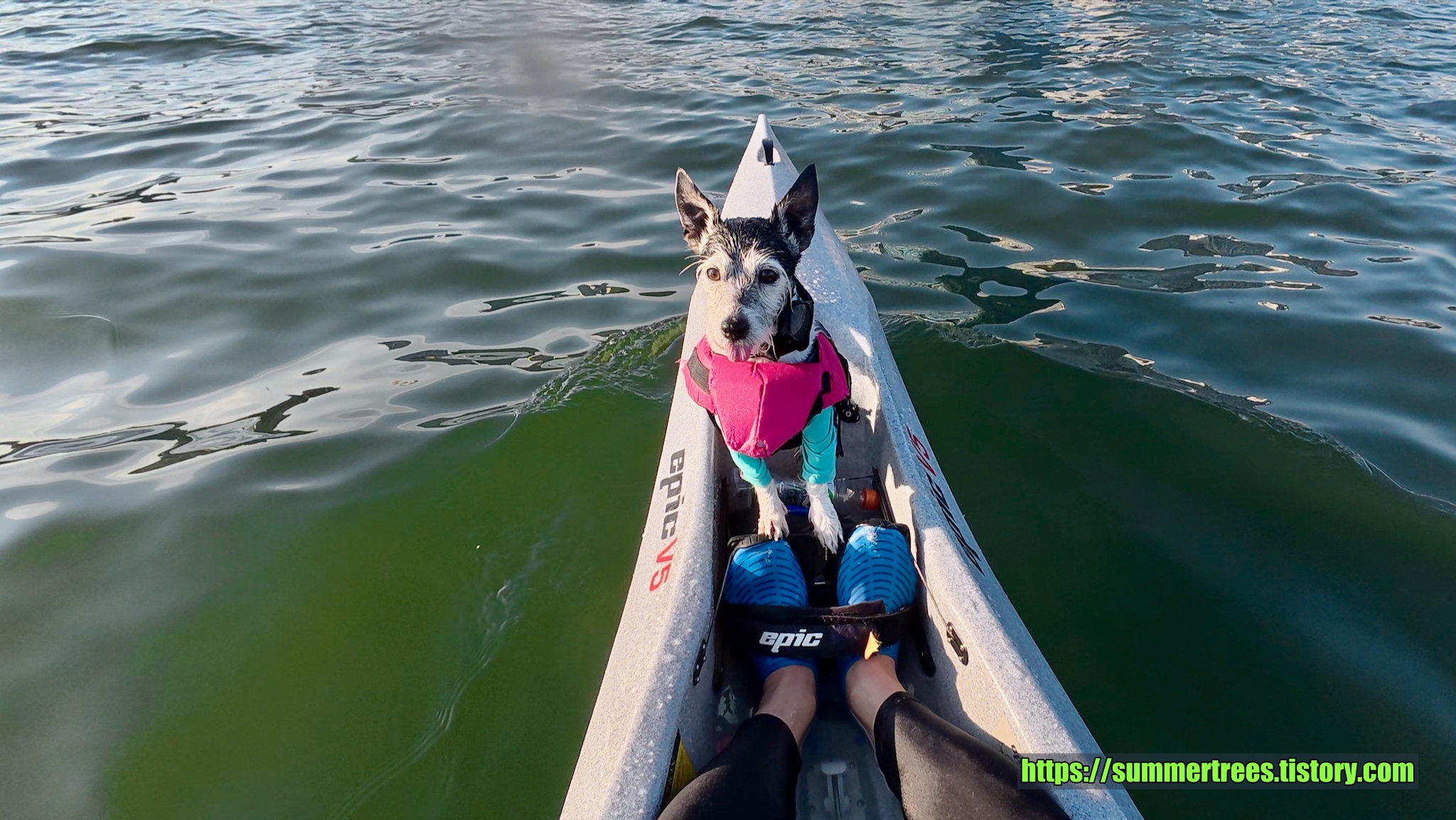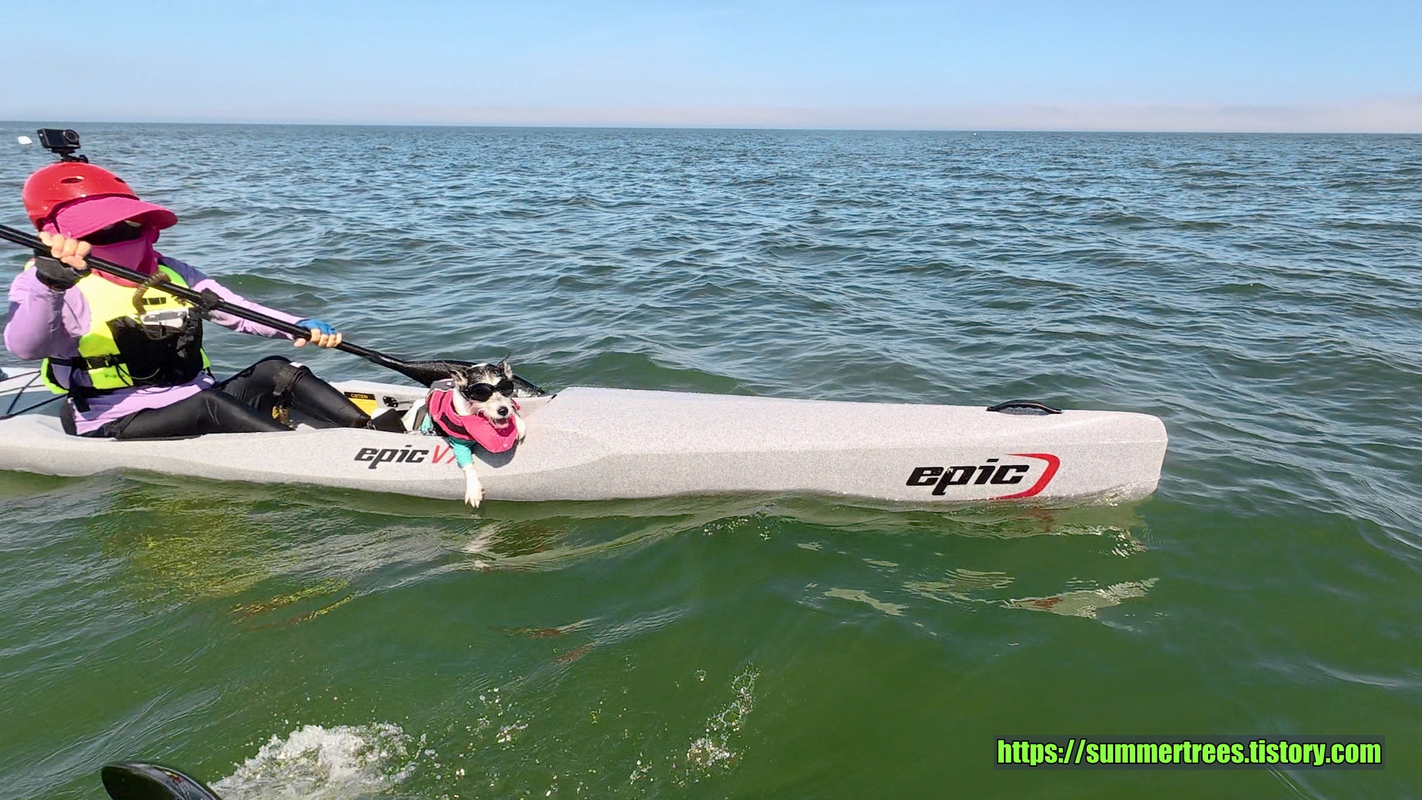 송곳섬과 수리섬 사이에 빠른 조류대가 있다. 초보 시절엔 바짝 겁먹었던 조류다. 이제 신나게 탄다.
